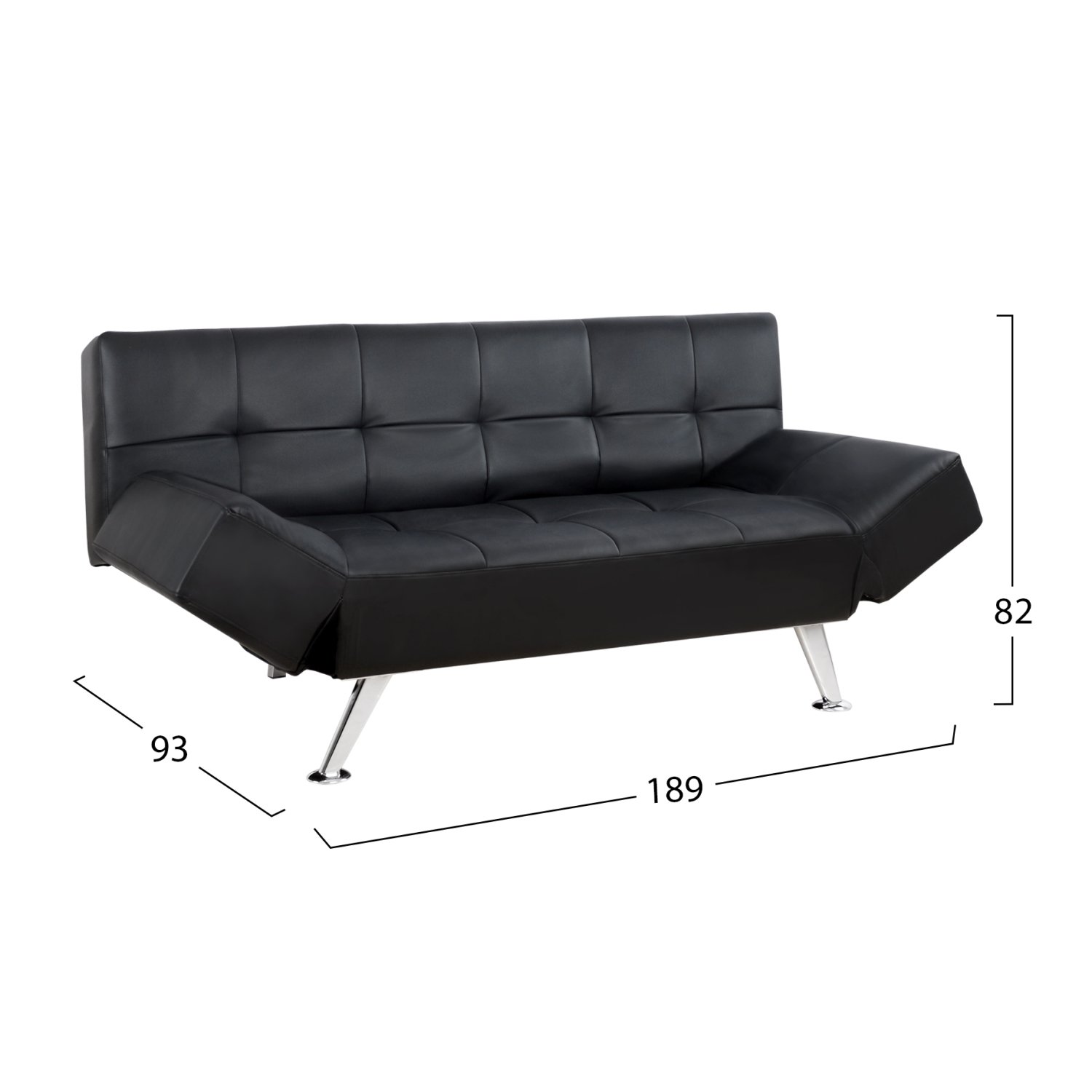 Καναπές κρεβάτι, επενδεδυμένος με τεχνόδερμα σε μαύρη απόχρωση 189x93x82 εκ.