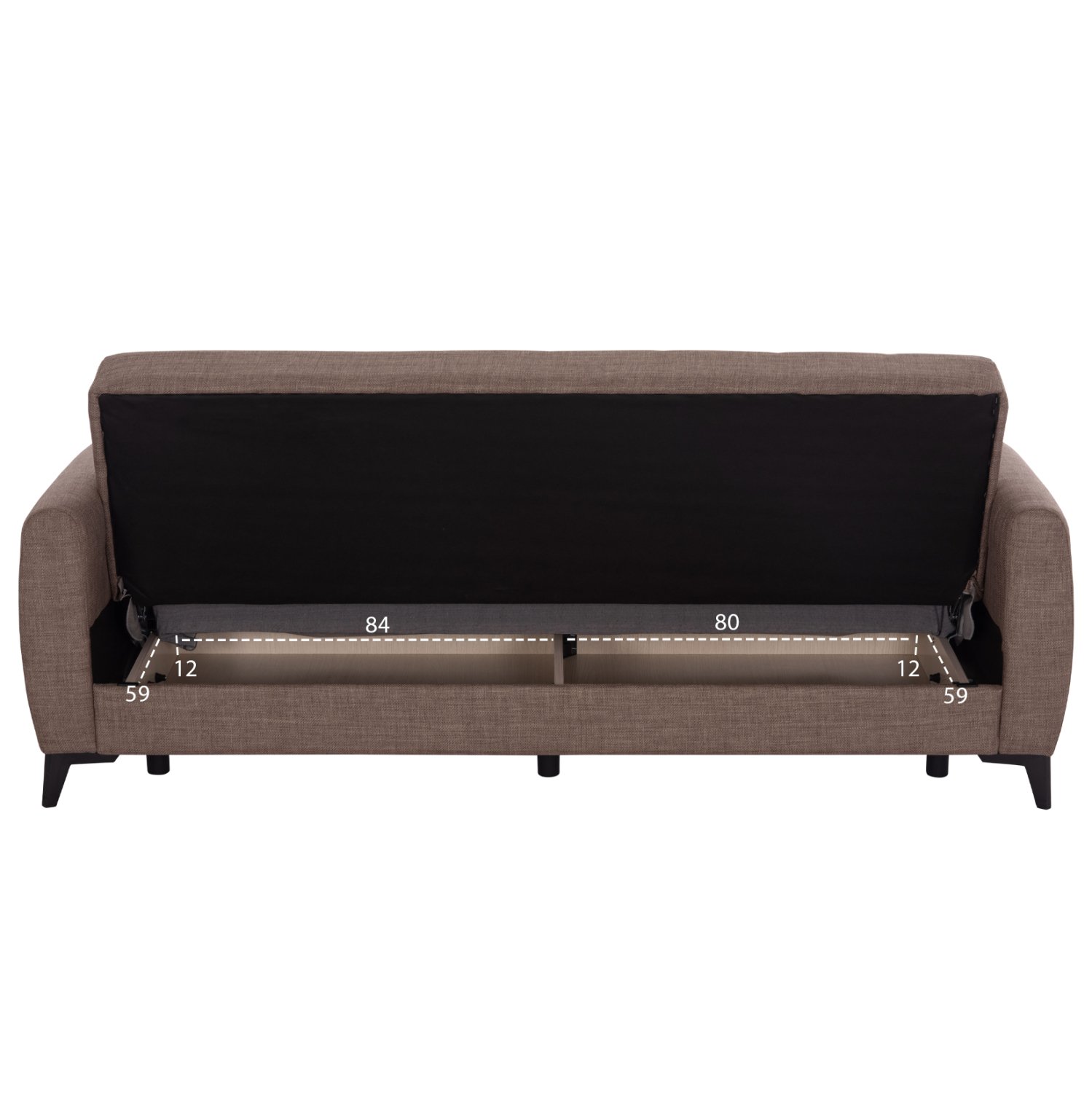 Η μετατροπή του σε κρεβάτι γίνεται με έναν εύχρηστο μηχανισμό «κλικ-κλακ» που «ρίχνει» την πλάτη. Και για να μην υπάρξει ποτέ κανένα πρόβλημα με τον καναπέ, υπάρχουν επιπλέον πόδια που χρησιμεύουν όταν ο καναπές γίνεται κρεβάτι! Συνέπεια αυτού, βέβαια, είναι και η ύπαρξη δύο αποθηκευτικών χώρων κάτω από το κάθισμα του καναπέ, οι οποίοι πάντα είναι χρήσιμοι, ειδικά σε φοιτητικά σπίτια. Τέλος, τα πόδια του καναπέ σε μαύρο χρώμα, είναι ψηλά επιτρέποντας το εύκολο καθάρισμα χωρίς να χρειαστεί να μετακινηθεί ολόκληρος ο καναπές.