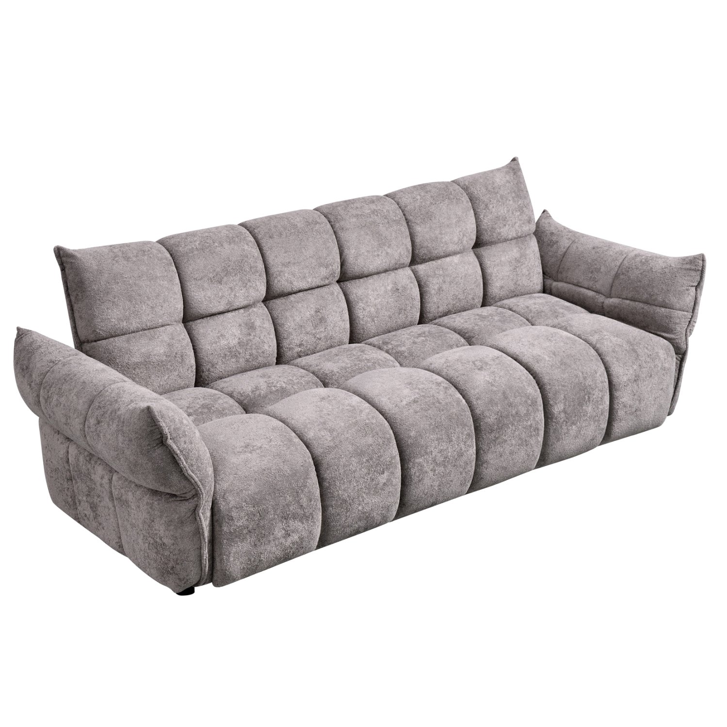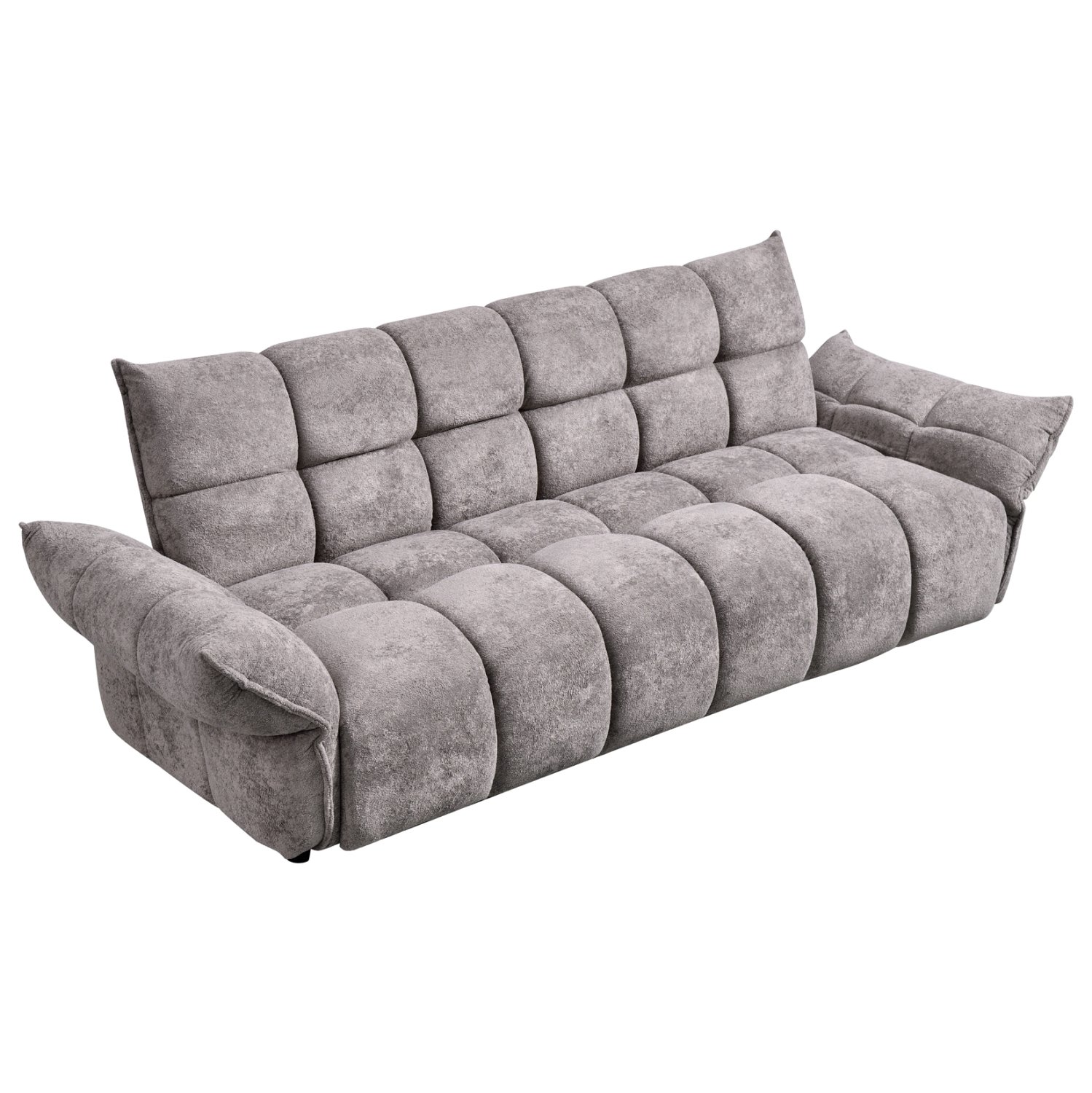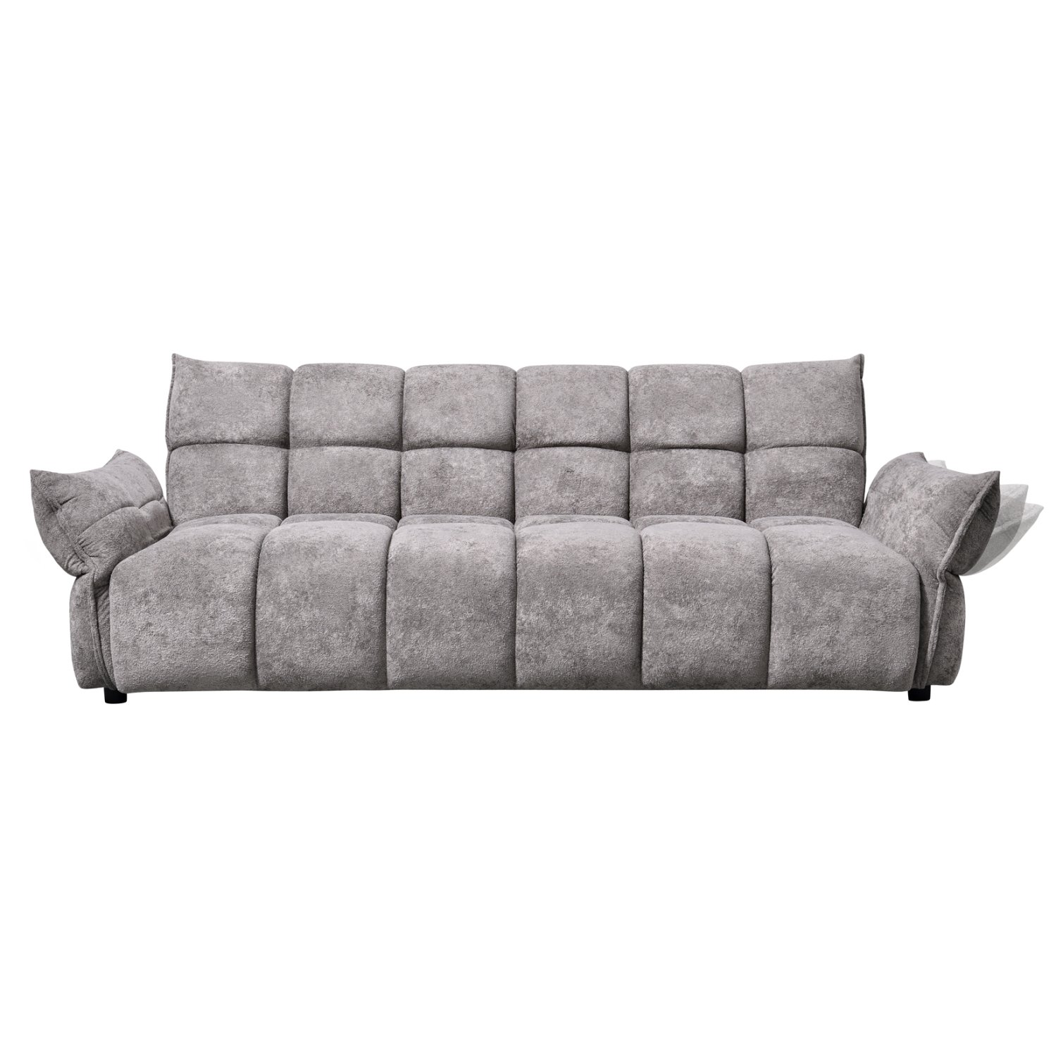 Ο MELU αποτελεί μια premium επιλογή καναπέ κρεβάτι που συνδυάζει σύγχρονο design με προηγμένη τεχνολογία άνεσης. Η γκρι υφασμάτινη επένδυση σε καπιτονέ τεχνοτροπία καλύπτει τόσο το μπροστινό όσο και το πίσω μέρος της πλάτης, επιτρέποντας τοποθέτηση ακόμη και στο κέντρο του χώρου. Τα μπράτσα με ρύθμιση κλίσης τριών επιπέδων προσφέρουν ευελιξία και εξατομικευμένη στήριξη, αναβαθμίζοντας την καθημερινή εμπειρία χαλάρωσης.