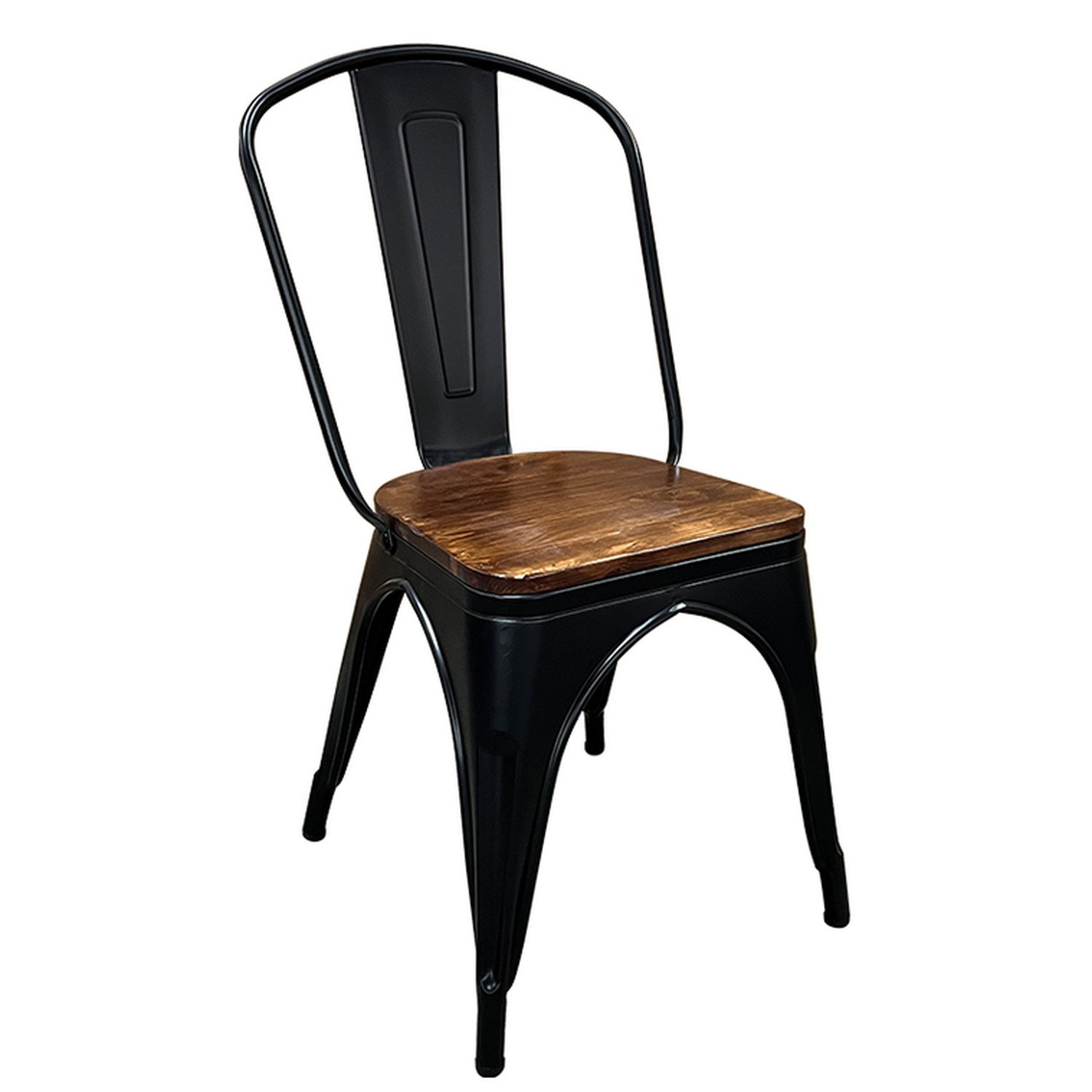 Καρέκλα ArteLibre Βιομηχανικού Τύπου Vintage TOLIKO II Μαύρο Ματ/Καφέ Μέταλλο/Ξύλο 45x53x85cm