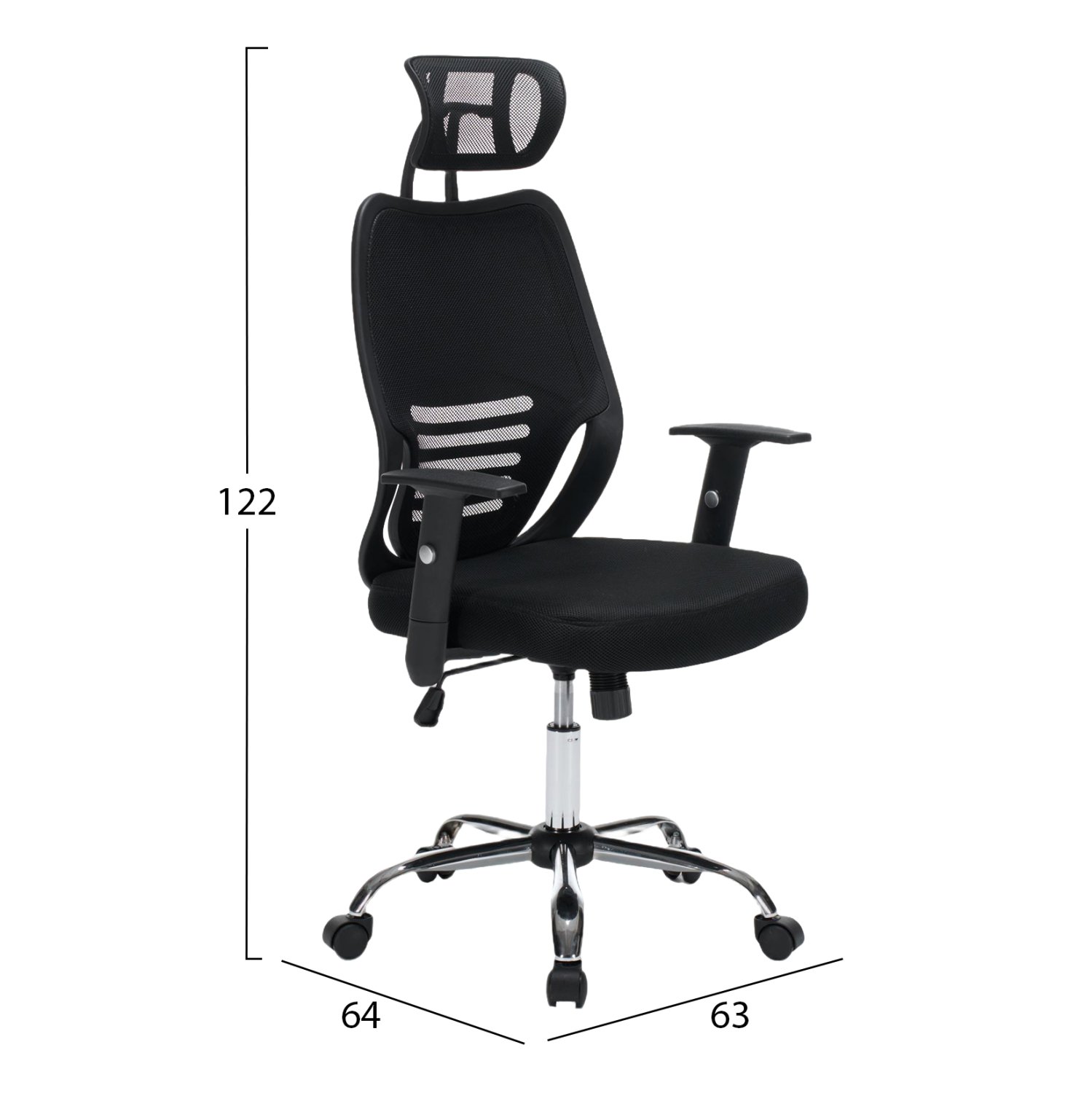 ΚΑΡΕΚΛΑ ΓΡΑΦΕΙΟΥ BRIEF HM1206.01 ΜΑΥΡΟ MESH–ΒΑΣΗ ΧΡΩΜΙΟΥ 63x64x122Υεκ.