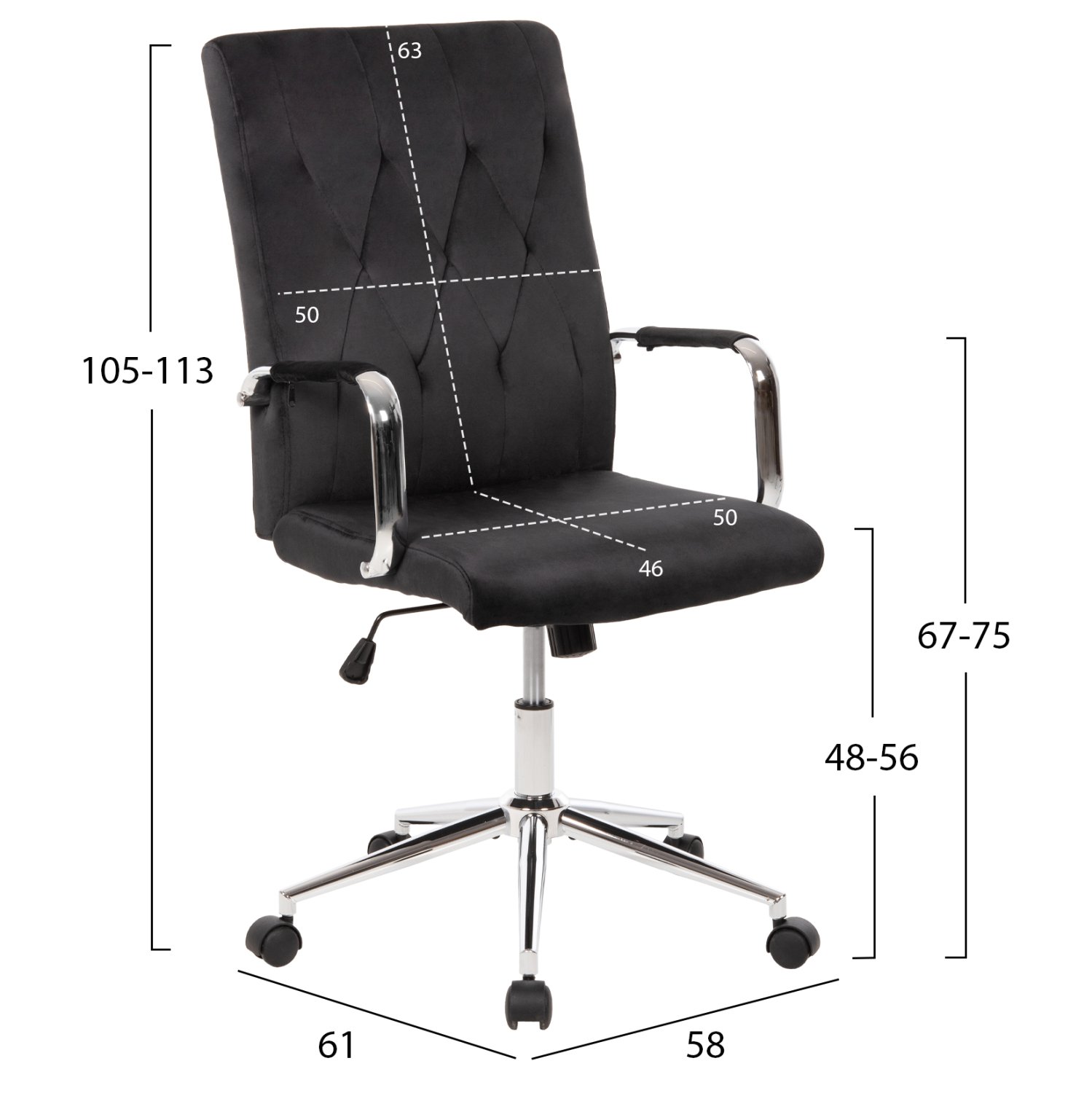 ΚΑΡΕΚΛΑ ΓΡΑΦΕΙΟΥ JOSEF HM1181.04 ΜΑΥΡΟ ΒΕΛΟΥΔΟ-INOX ΒΑΣΗ 58x61x105-113Yεκ.