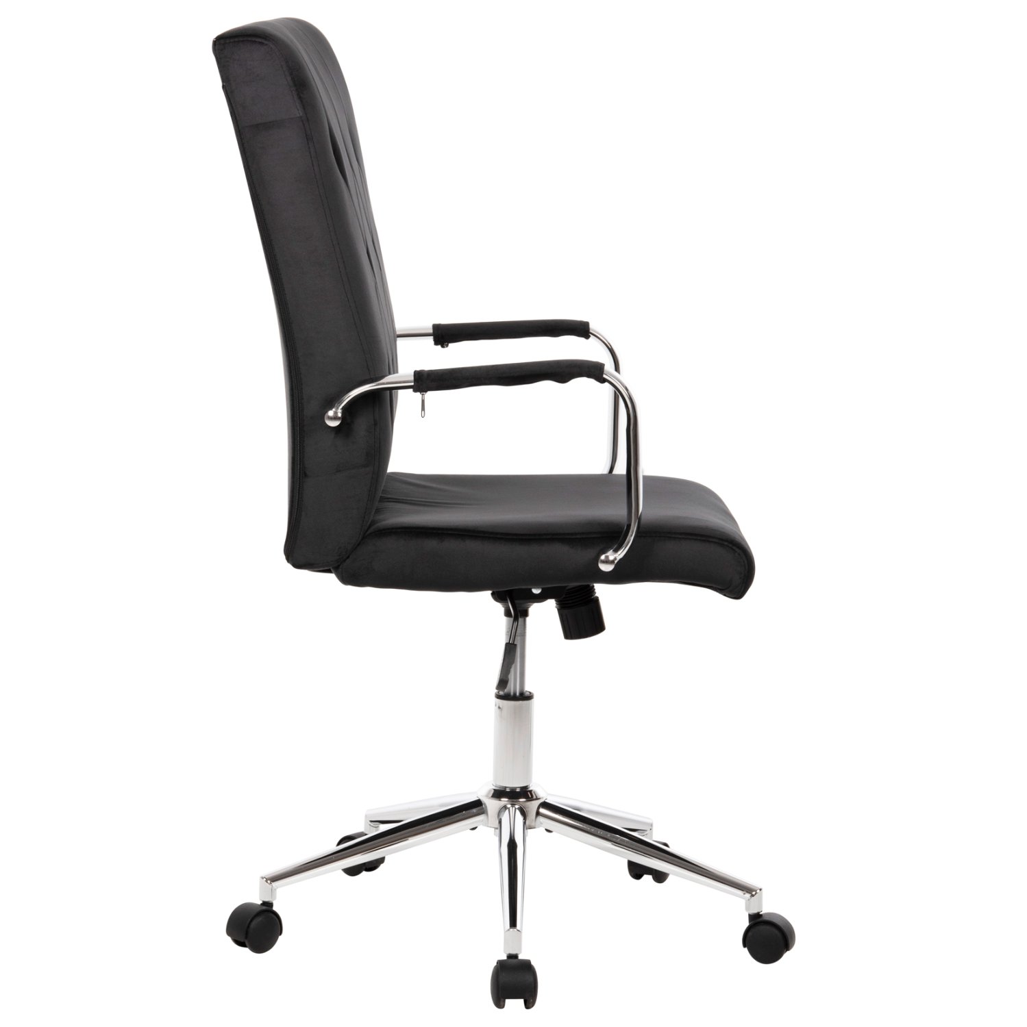 Διευθυντική καρέκλα γραφείου “JOSEF” σε ΜΑΥΡΟ χρώμα. Μια όμορφη καρέκλα γραφείου με ψηλά επίπεδα inox μπράτσα με στρογγυλεμένες γωνίες, επενδυμένα με βελούδινο ύφασμα. Η πλάτη είναι άνετη και ψηλή με «μαξιλάρι» από αφρώδη υλικά για άνεση κατά την χρήση και υποστηρίζει ολόκληρο τον κορμό σας, ενώ είναι επενδυμένη με βελούδινο ύφασμα, όπως επίσης και το φαρδύ και αναπαυτικό κάθισμα με την αναπαυτική επιφάνεια. Η inox γυαλιστερή βάση και η ανάρτηση με την ρύθμιση ύψους προσθέτουν μια αίσθηση πολυτέλειας που είναι πάντα ευπρόσδεκτη για κάθε χώρο, ενώ ο μηχανισμός της καρέκλας με τον καλαίσθητο μεταλλικό μοχλό, προσφέρει ρύθμιση ανάκλισης, για άνετη και ευχάριστη πολύωρη χρήση! Ιδανική για επαγγελματικούς χώρους κυρίως, αλλά ακόμα και για το γραφείο σας στο σπίτι εάν περνάτε αρκετές ώρες στον υπολογιστή και θέλετε μια όμορφη και πλούσια καρέκλα γραφείου.