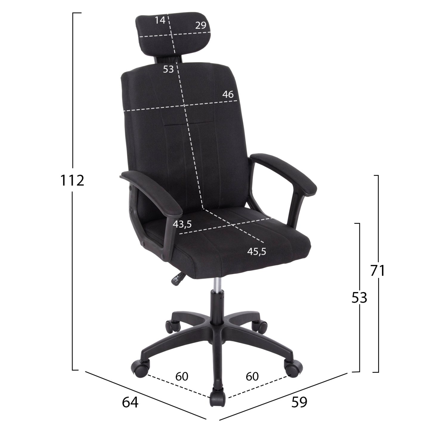 ΚΑΡΕΚΛΑ ΓΡΑΦΕΙΟΥ NIMBLE HM1199.11 ΜΑΥΡΟ ΥΦΑΣΜΑ-ΜΑΥΡΟΣ ΣΚΕΛΕΤΟΣ & ΒΑΣΗ 59x64x122Υεκ