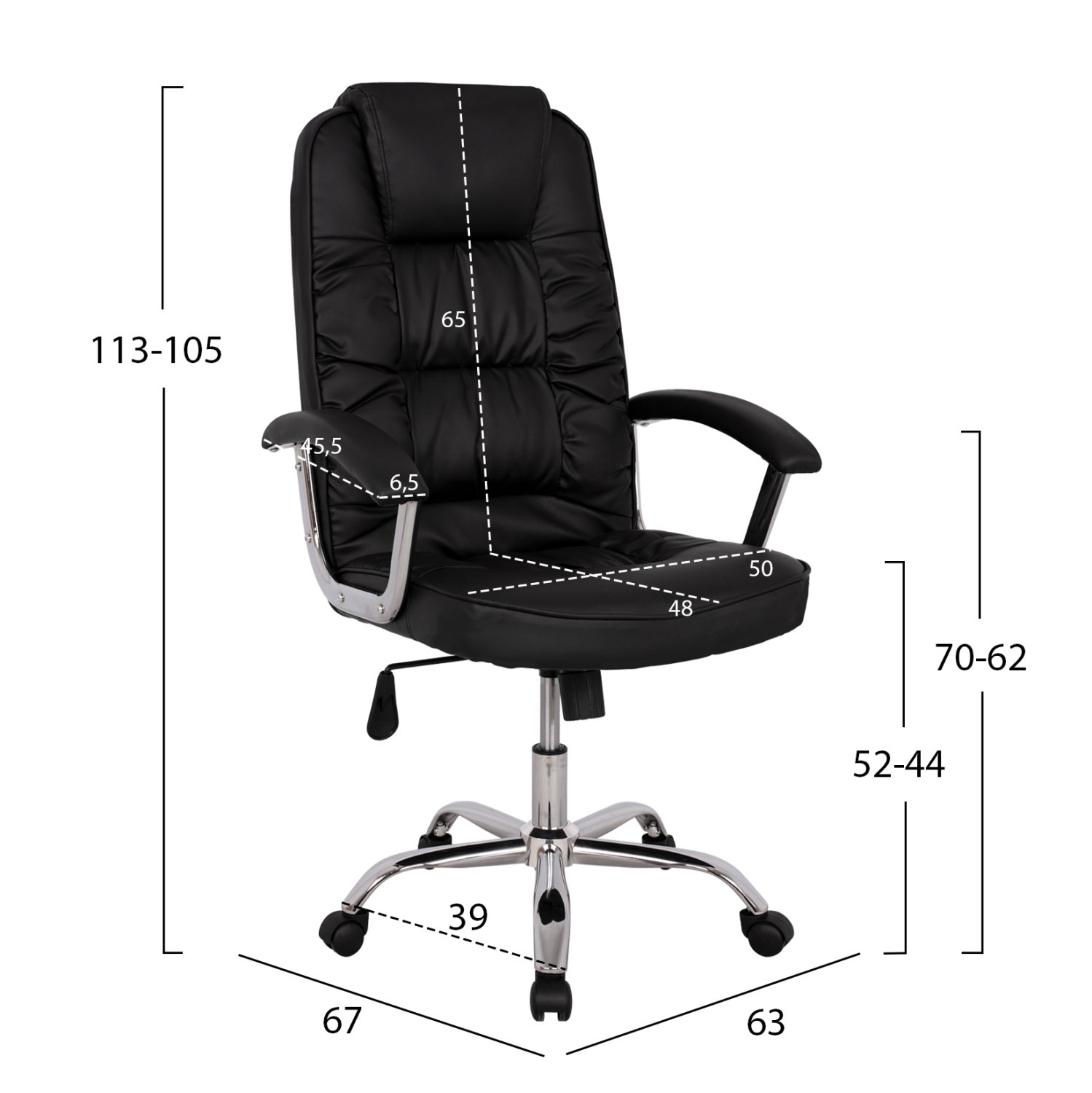 ΚΑΡΕΚΛΑ ΓΡΑΦΕΙΟΥ REESE HM1112 ΜΕ ΜΑΥΡΟ PU ΚΑΙ ΒΑΣΗ ΧΡΩΜΙΟΥ 63x67x113 cm.