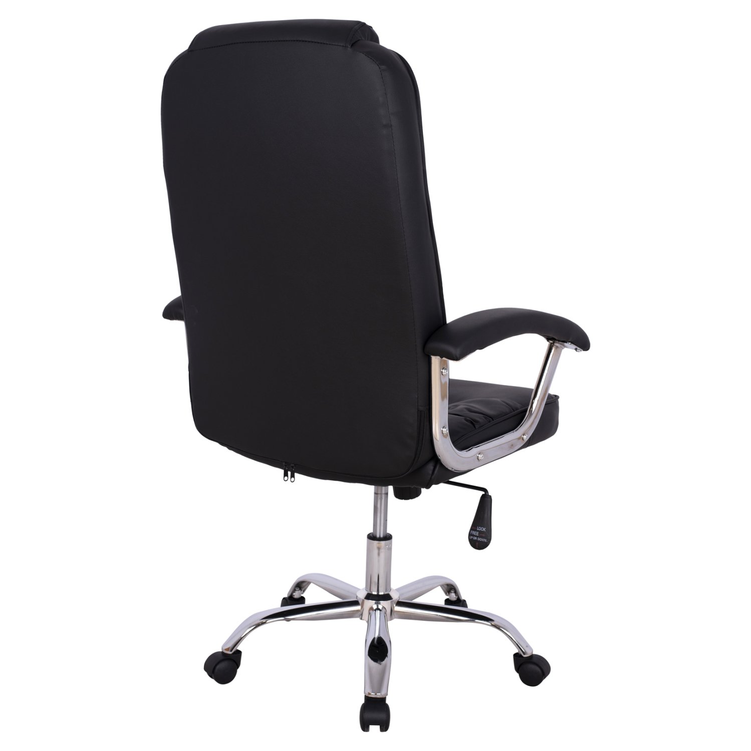 Διευθυντική καρέκλα γραφείου “REESE” σε μαύρο χρώμα. Μια «πλούσια» καρέκλα γραφείου με ψηλά μπράτσα με ελαφριά κλίση και επενδυμένα με μια στρώση αφρολέξ σε PU δέρμα. Η πλάτη είναι ψηλή με πλούσια στρώση από αφρώδη υλικά και έξτρα ενσωματωμένο μαξιλάρι για το κεφάλι για άνεση κατά την χρήση και υποστηρίζει ολόκληρο τον κορμό σας, ενώ είναι επενδυμένη με υψηλής ποιότητας PU δέρμα , όπως επίσης και το φαρδύ και αναπαυτικό κάθισμα με την αναπαυτική επιφάνεια. Η βάση είναι χρωμιωμένη σε σχήμα «αστέρι» με κυρτά πόδια και μαύρα ροδάκια.