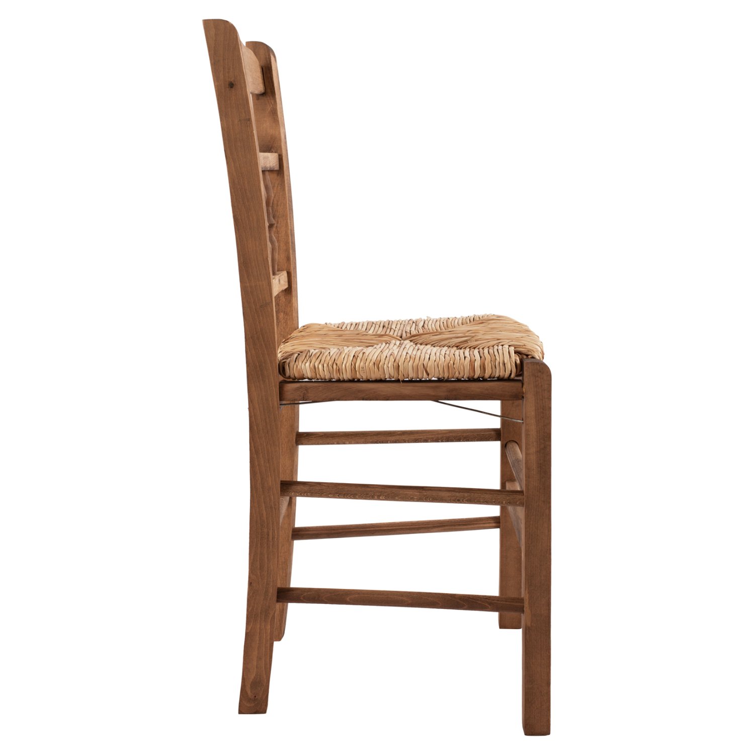 Καρέκλα καφενείου καγκελωτή από ξύλο οξιάς εμποτισμού καρυδί και ψάθα.