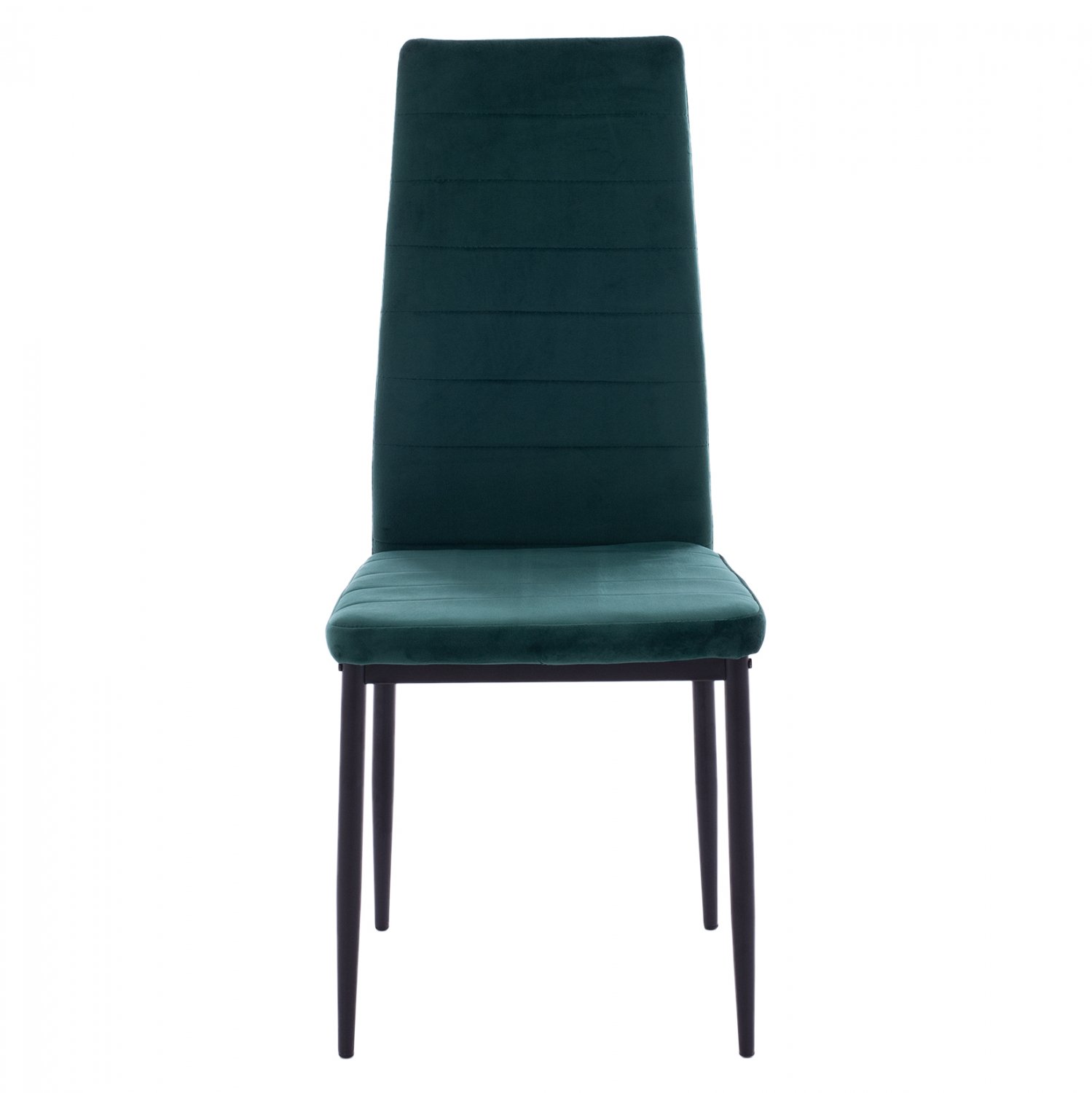 Καρέκλα κουζίνας από σκελετό μεταλλικό K/D μαύρου χρώματος και επένδυση από βελούδινο ύφασμα σε κυπαρισσί απόχρωση.