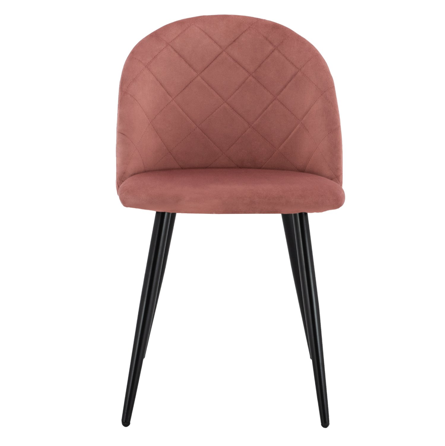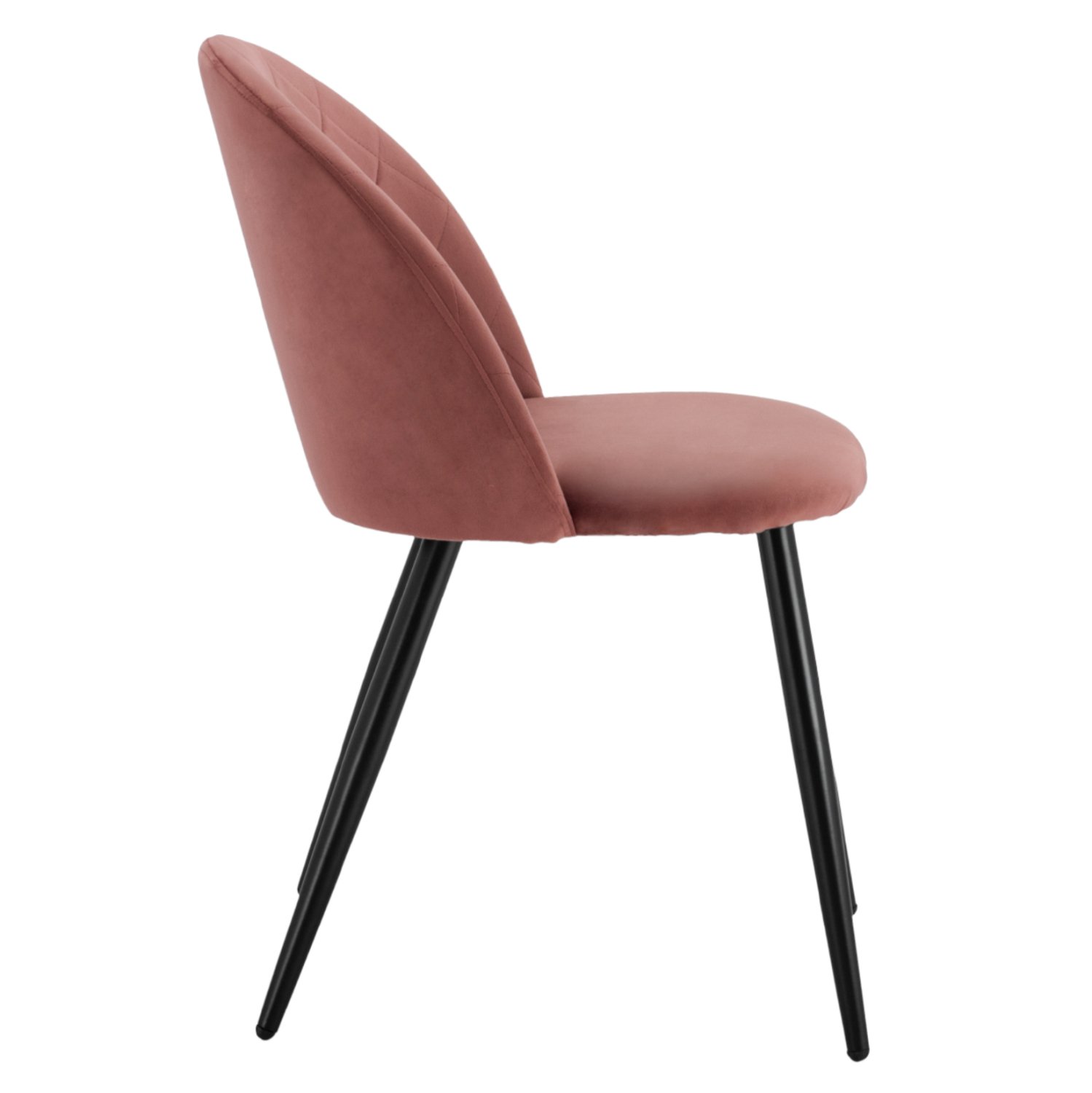 Καρέκλα επενδυμένη με ύφασμα βελούδο σε σάπιο μηλο απόχρωση και μεταλλικό μαύρο σκελετό.