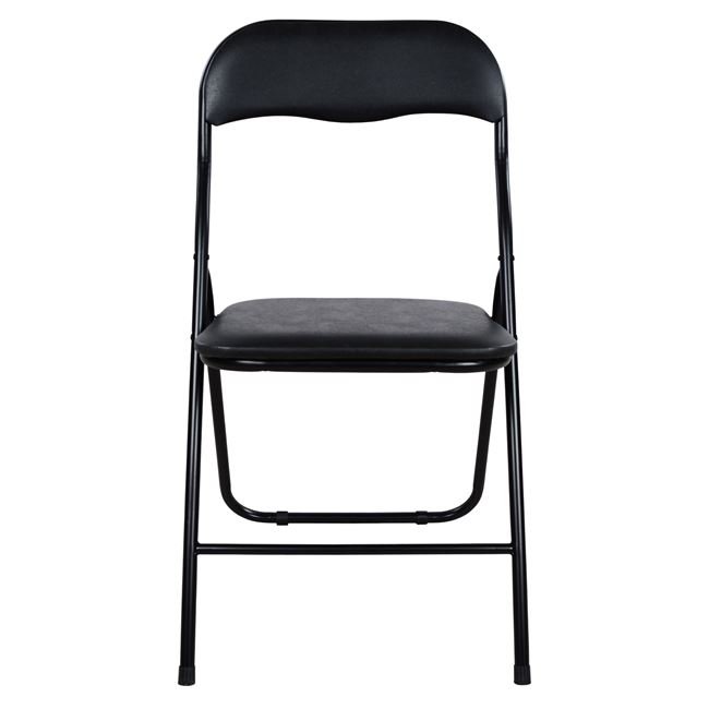 Καρέκλα μεταλλική πτυσσόμενη με επένδυση από PVC σε μαύρη απόχρωση.
