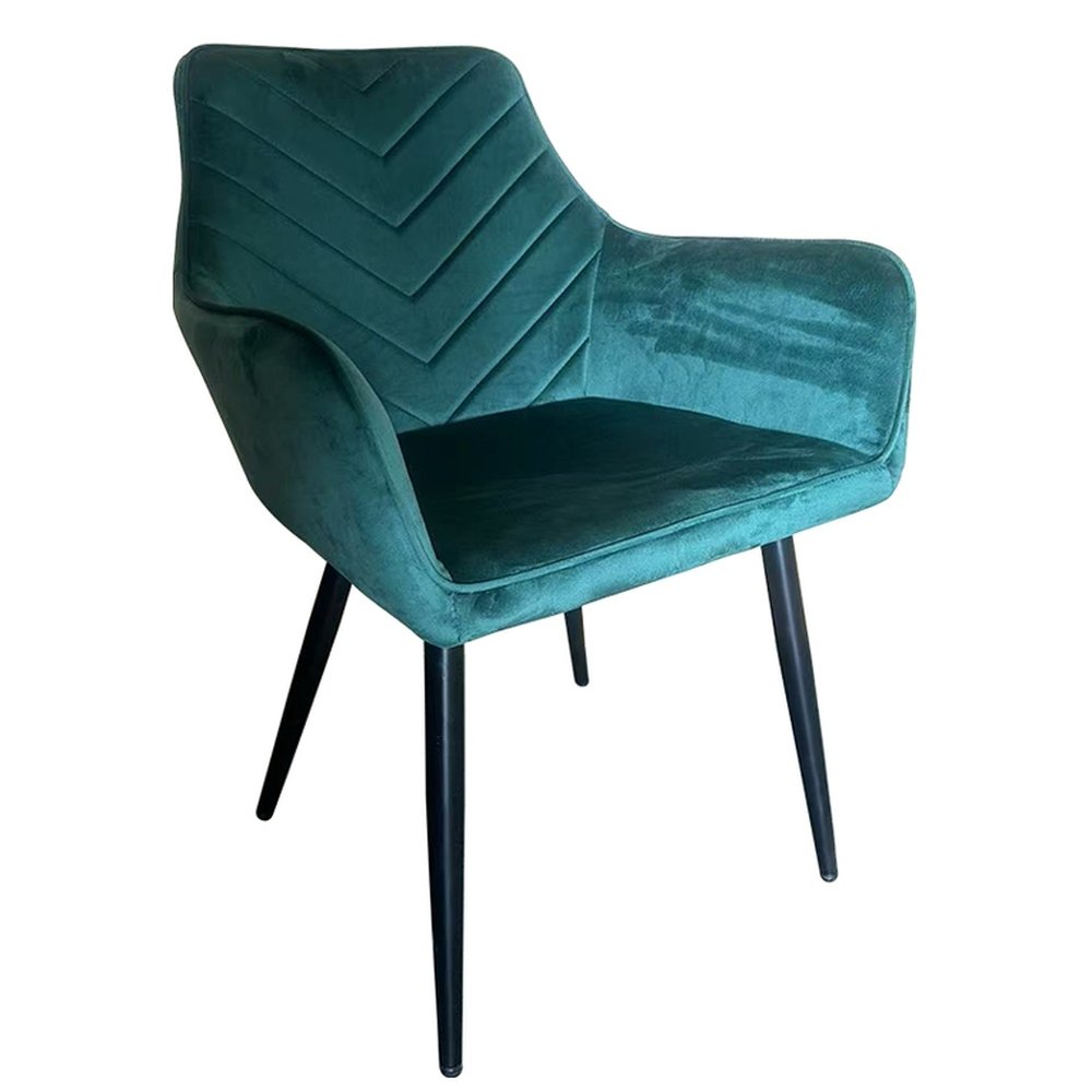 Η καρέκλα τραπεζαρίας FLORITA της ArteLibre σε πράσινο βελούδο προσφέρει έναν εντυπωσιακό συνδυασμό κλασικής κομψότητας και μοντέρνου στυλ. Το πράσινο βελούδο προσθέτει μια φρέσκια και εκλεπτυσμένη αίσθηση, ενώ τα μαύρα μεταλλικά πόδια παρέχουν σταθερότητα και αντοχή. Το σχέδιο με τις διαγώνιες ραφές στην πλάτη ενισχύει τη μοναδική της αισθητική, καθιστώντας την ιδανική επιλογή για σύγχρονες τραπεζαρίες.