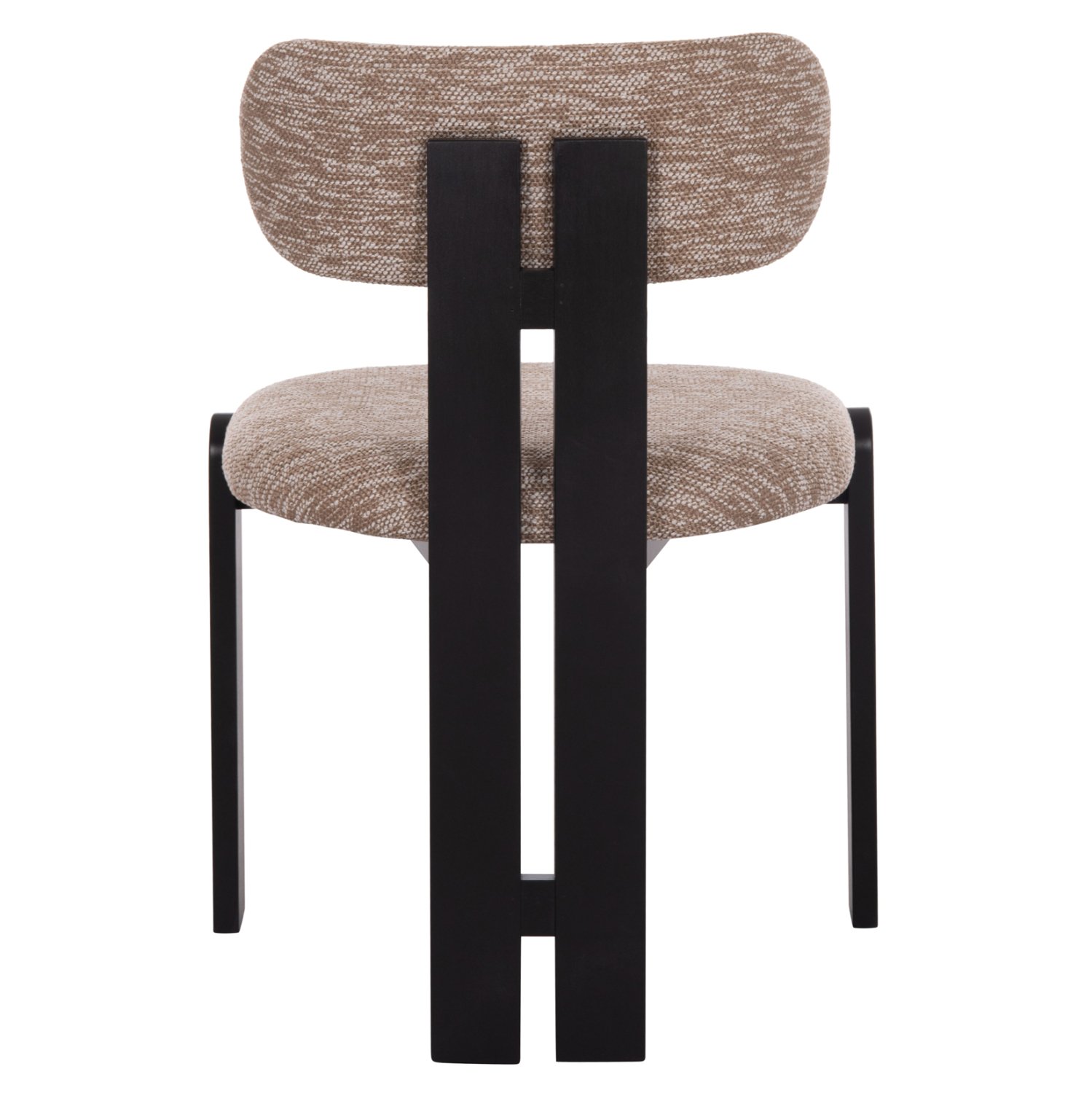 Η καρέκλα τραπεζαρίας KARVO αποτελεί μια μοναδική πρόταση τόσο για το σπίτι, όσο και για τον επαγγελματικό σας χώρο. Ο σκελετός με το πολύ ιδιαίτερο «τρίποδο» design είναι από ποιοτικό ξύλο σε ΜΑΥΡΟ χρώμα, ενώ το κάθισμα και η κυρτή πλάτη είναι επενδυμένα με υπέροχο ανάγλυφο ύφασμα σε ΚΑΦΕ χρώμα.