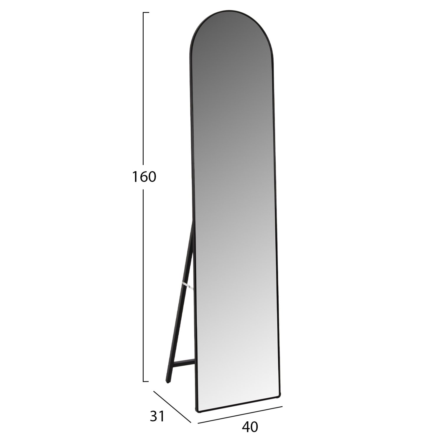Ο JOELY είναι ένας καθρέφτης δαπέδου με ΜΑΥΡΟ σκελετό, κομψός και σε άκρως ικανοποιητική διάσταση. Ένα χρήσιμο «εργαλείο» για κάθε υπνοδωμάτιο που θα ταιριάξει με την διακόσμηση σας, είτε είναι κλασική είτε πιο μοντέρνα. Η στήριξη γίνεται με μια πτυσσόμενη αλουμινένια διάταξη. Ο καθρέφτης στο επάνω μέρος του έχει αψιδωτό σχεδιασμό.