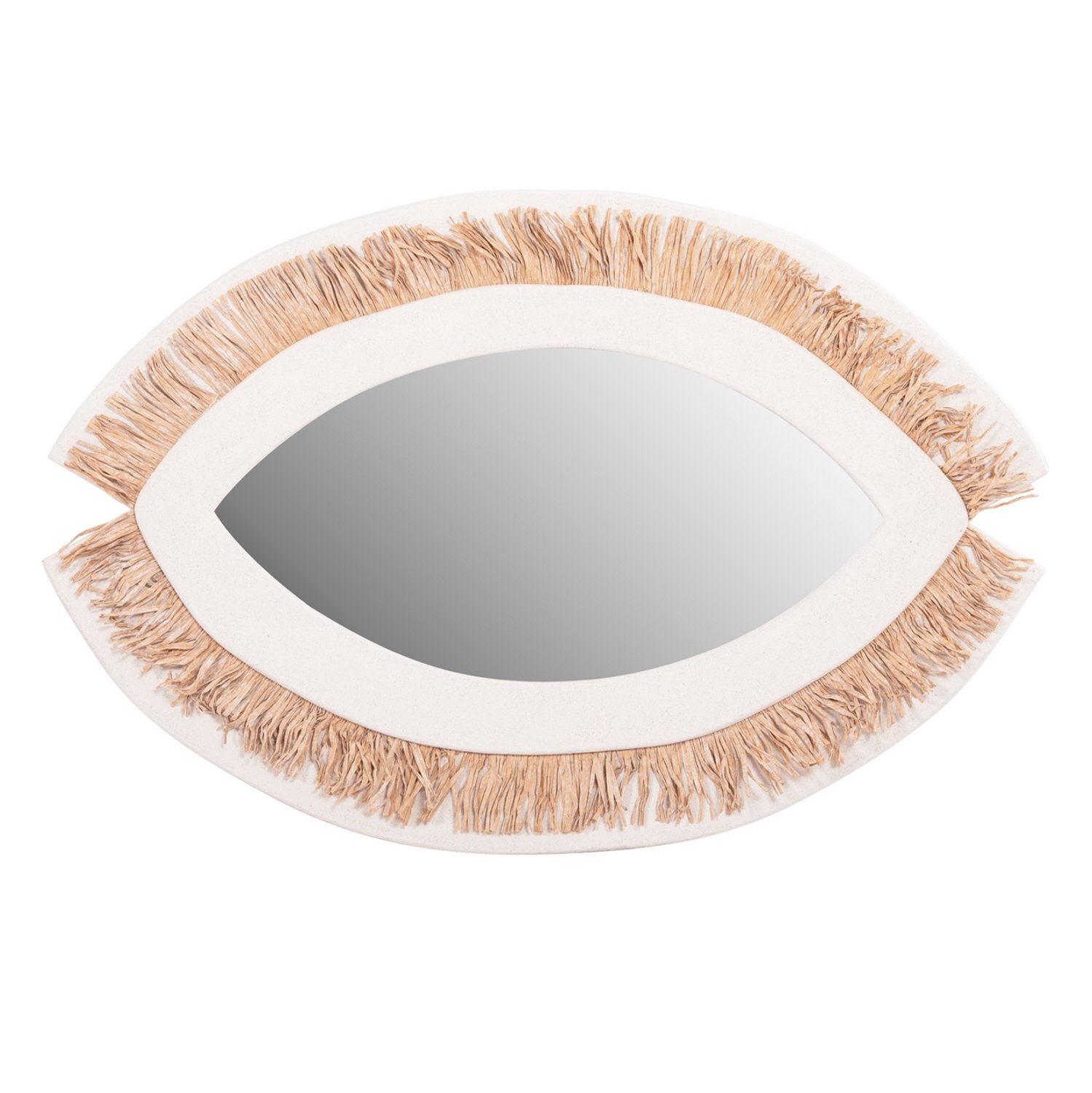 Ο καθρέπτης SANTORINI είναι ένας χειροποίητος καθρέφτης τοίχου με ΥΠΟΛΕΥΚΟ σκελετό σε όμορφο σχήμα που θυμίζει μάτι, με ΜΠΕΖ ακρυλικό grass ως περιμετρική διακόσμηση. Ένα χρήσιμο διακοσμητικό για οποιοδήποτε χώρο χρειάζεστε έναν καθρέπτη. Ιδανικός για μια “νησιωτικού” στυλ διακόσμηση!
