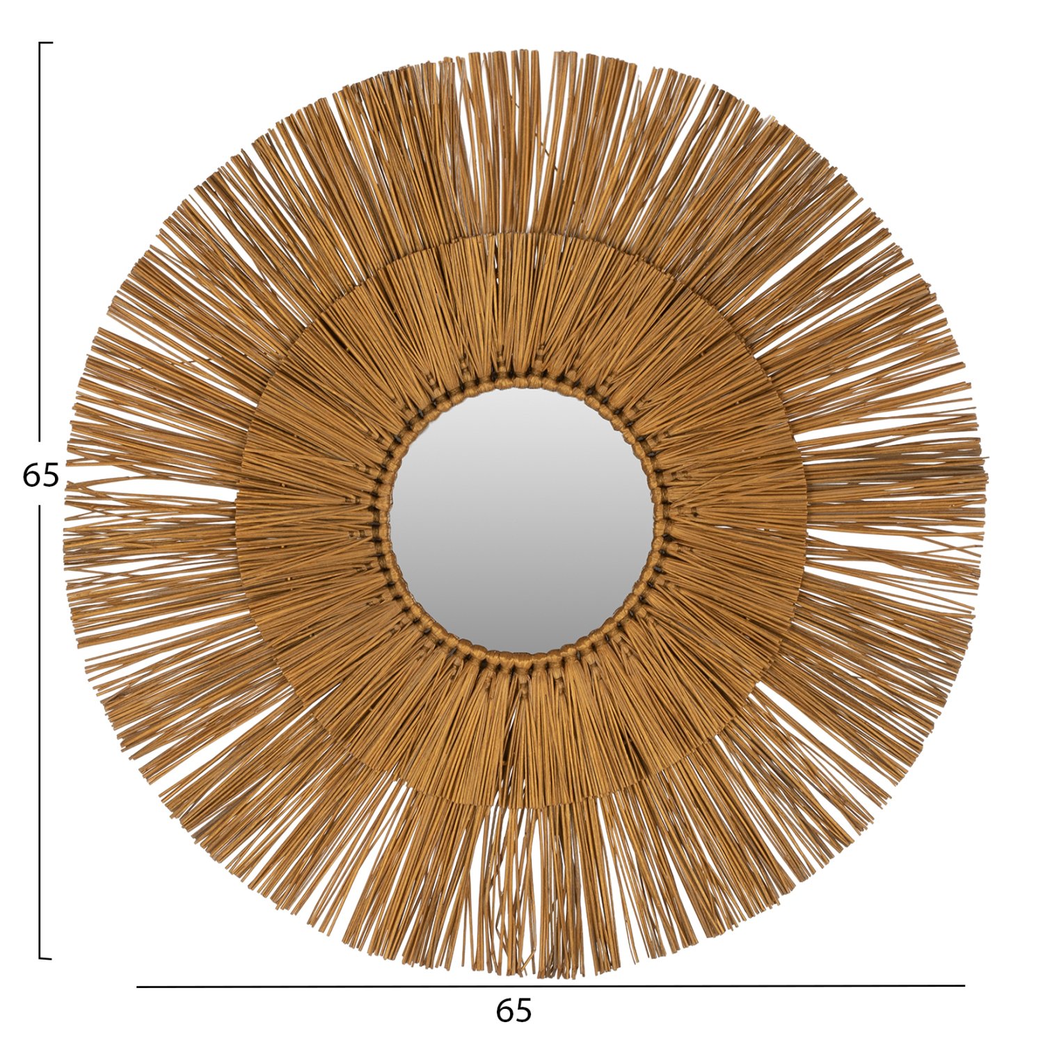 O καθρέπτης ΗΜ7801, είναι πραγματικά ένα εντυπωσιακό κομμάτι στην διακόσμηση του χώρου σας! Το design του είναι όμορφο με διπλό στρογγυλό πλαίσιο από το χόρτο Mendong, το οποίο στο κέντρο του «φιλοξενεί» τον καθρέπτη, ενώ είναι σε χρυσό χρώμα. Το χαρακτηριστικό είναι ότι ο καθρέφτης είναι μικρός και αποτελεί κυρίως διακοσμητικό στοιχείο.