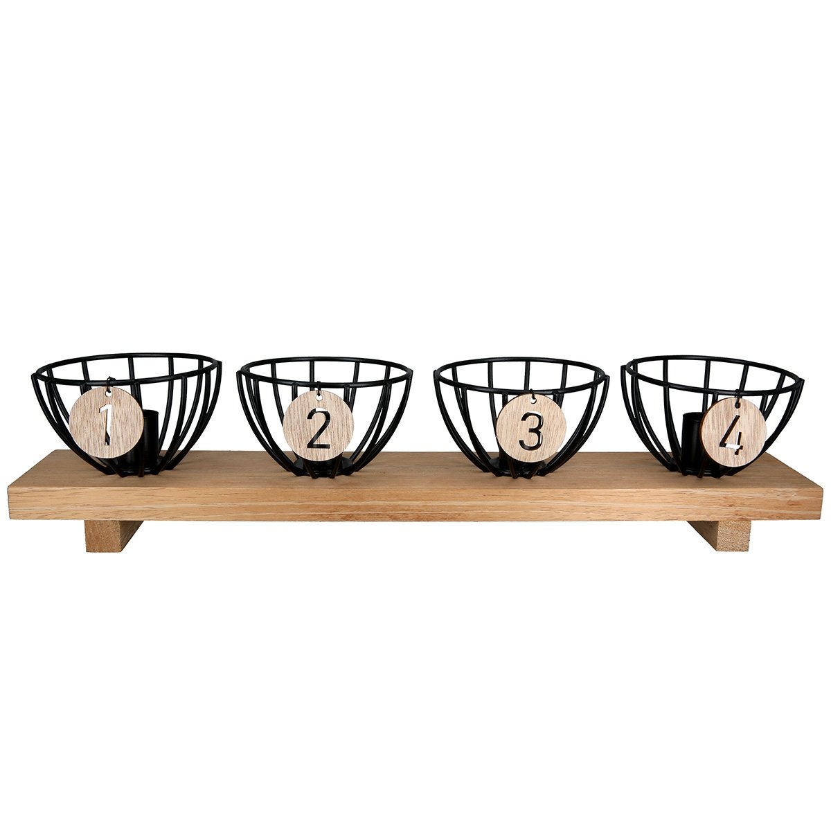Κηροπήγιο Ορθογώνιο Μέταλλο/Ξύλο Μαύρο/Εκρού 10×45.5x10cm