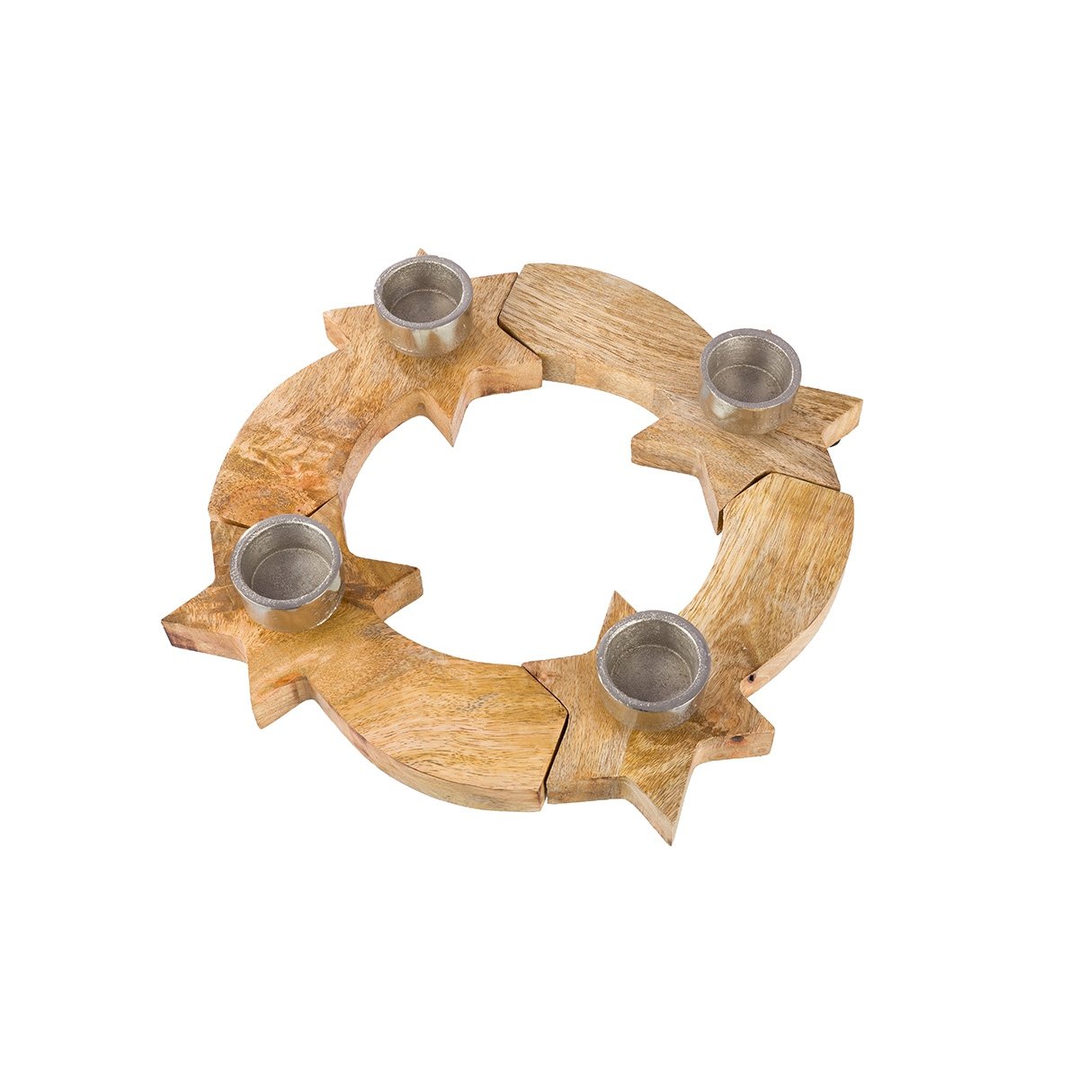 Κηροπήγιο στρογγυλό αστέρια εκρού ξύλο 37x6cm.