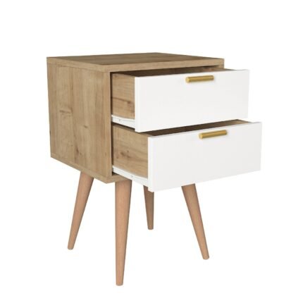 Κομοδίνο με δύο συρτάρια αποθήκευσης, για να ολοκληρώσεις τη διακόσμηση του χώρου σου. Μία εξαιρετική επιλογή σε φυσικό χρώμα, καθώς συνδυάζει την υψηλή αντοχή με τον διαχρονικό κλασικό σχεδιασμό, που “δένει” σε κάθε χώρο. Στιβαρή κατασκευή, ιδανική για οικιακή και επαγγελματική χρήση (ξενοδοχεία, ξενώνες, airbnb κτλ).