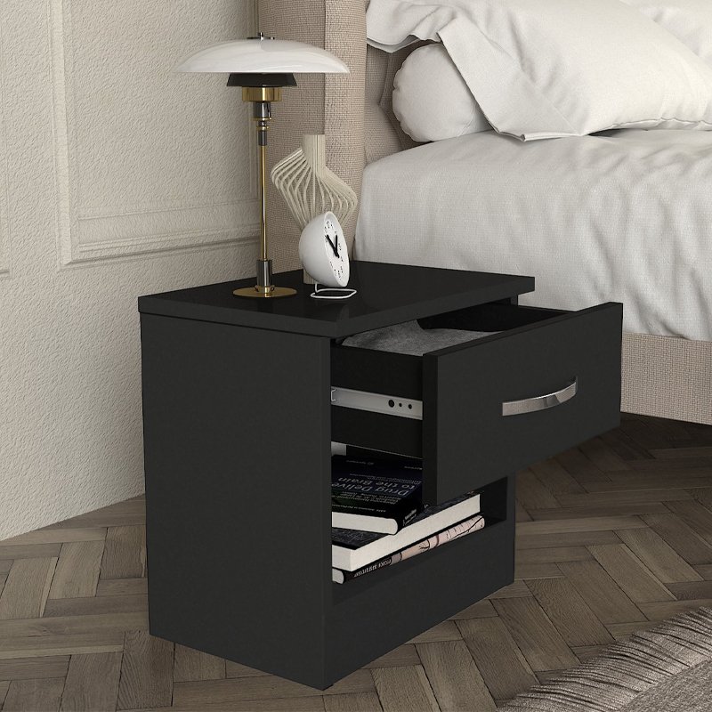 Κομοδίνο Lube Megapap χρώμα μαύρο 40×28,2×40εκ.