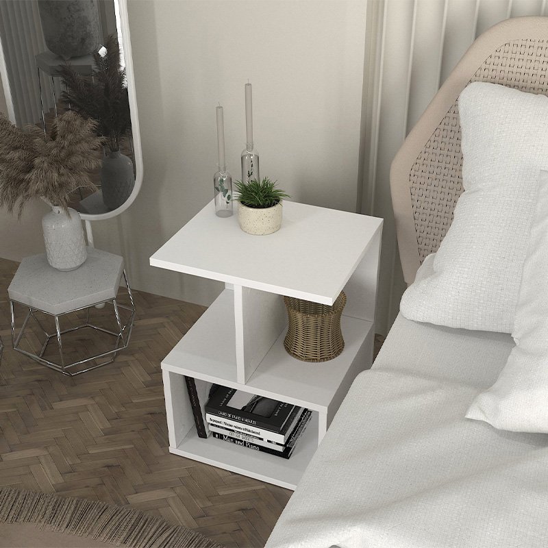 Κομοδίνο – Τραπεζάκι βοηθητικό Entiero Megapap χρώμα λευκό 39,8x35x54,6εκ.