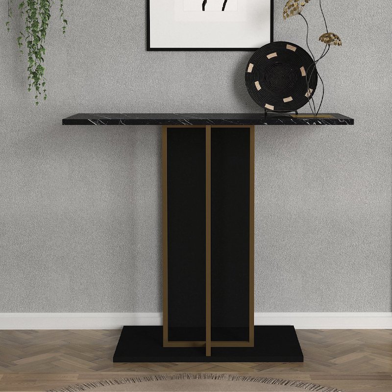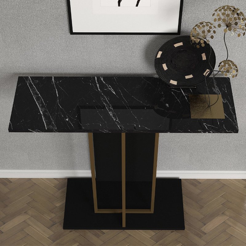 Κονσόλα Brandy Megapap χρώμα μαύρο – μαύρο εφέ μαρμάρου – χρυσό 90×29,6×76,8εκ.