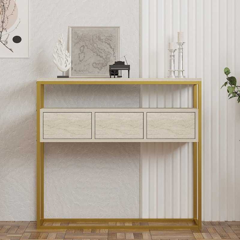Κονσόλα Guarda Megapap χρώμα μπεζ travertine – χρυσό 100x29x90εκ.