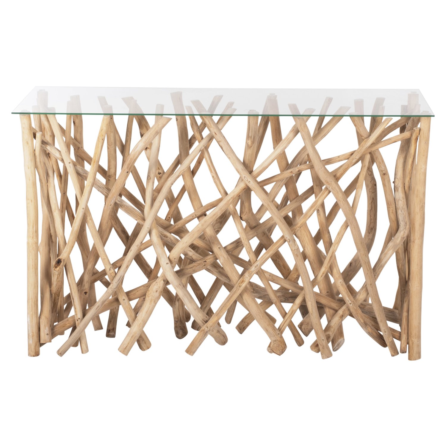 HM9373—Κονσόλα σε κανονικό ορθογώνιο σχήμα επιφάνειας από γυαλί, με σώμα από κλαδιά του δέντρου ΤΕΑΚ αντί για παραδοσιακά πόδια. Το αισθητικό αποτέλεσμα είναι όμορφο και είναι αναπόφευκτο να τραβήξει την προσοχή όλων, σε οποιοδήποτε χώρο κι αν τοποθετηθεί! Αποτελεί την επιτομή της μοντέρνας ρουστίκ διακόσμησης για τον χώρο που επιθυμείτε. Τι είναι όμως η κονσόλα; Η κονσόλα είναι ένα κομψό, γραφικό, συμπαγές έπιπλο που μπορεί να τοποθετηθεί σε σχεδόν οποιοδήποτε δωμάτιο- κουζίνα, διάδρομο, κρεβατοκάμαρα, παιδικό δωμάτιο, σαλόνι, dressing room, γραφείο, ακόμα και στο μπάνιο. Με αυτό, ο σχεδιασμός του χώρου γίνεται εκλεπτυσμένος, κομψός, πλήρως σκεπτόμενος. Η κονσόλα στο εσωτερικό χρησιμοποιείται τόσο ως μέρος ενός σετ με πολλά στοιχεία, όσο και ανεξάρτητα και επιλέγεται για τον γενικό σχεδιασμό του δωματίου.