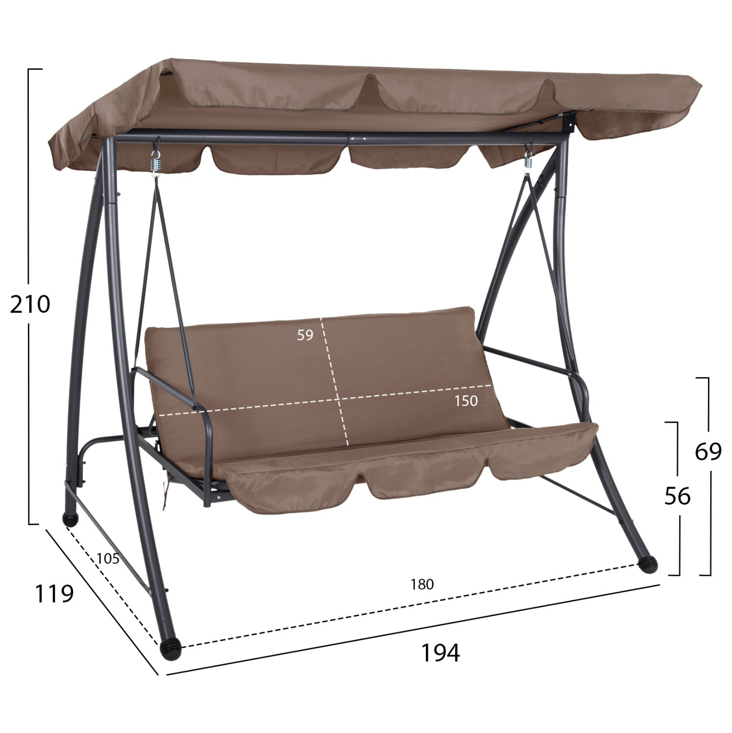 ΚΟΥΝΙΑ-ΚΡΕΒΑΤΙ 3ΘΕΣΙΑ LIKID HM5980.02 ΜΕΤΑΛΛΟ ΓΚΡΙ-ΥΦΑΣΜΑ ΚΑΦΕ 200x120x164Υεκ