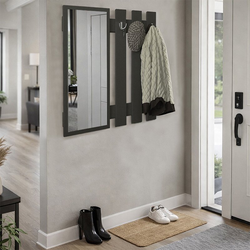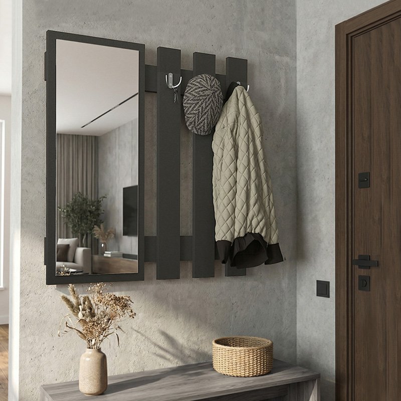 Κρεμάστρα τοίχου με καθρέπτη Folin Megapap χρώμα ανθρακί 90x4x90εκ.