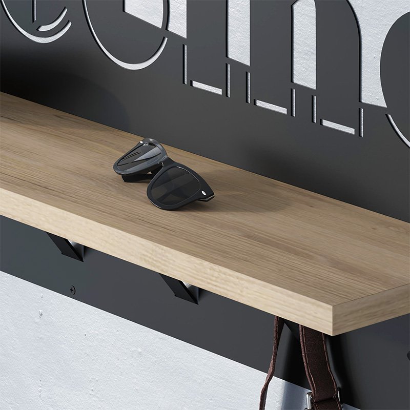 Κρεμάστρα τοίχου Welcome Megapap χρώμα μαύρο – sapphire oak 86×15,2×29εκ.