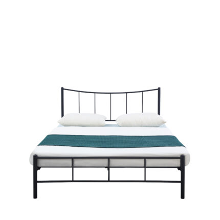Μεταλλικό διπλό κρεβάτι σε μαύρο χρώμα με διακοσμητικά μοτίβα και προσκέφαλο με καμπύλη. Διαθέτει μεταλλικό περιμετρικό σκελετό με μοντέρνα σχέδια. Συμπεριλαμβάνονται ορθοπεδικές τάβλες. Είναι ένα διαχρονικό κρεβάτι που χρησιμοποιείται σε μοντέρνους χώρους.