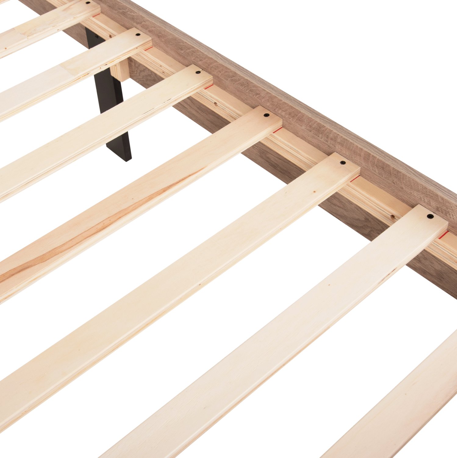 Ο σκελετός του κρεβατιού είναι από mdf. Το MDF (Medium Density Fiber) είναι ένα σύγχρονο υλικό ευρείας κατανάλωσης το οποίο επιλέγεται πολύ συχνά, και βασικά χαρακτηριστικά του είναι ότι απορροφά ελάχιστη υγρασία, διαθέτει ομοιογένεια στην μάζα του, ικανοποιητικές μηχανικές ιδιότητες, εξαιρετική ομαλότητα και πολλές δυνατότητες επεξεργασίας.