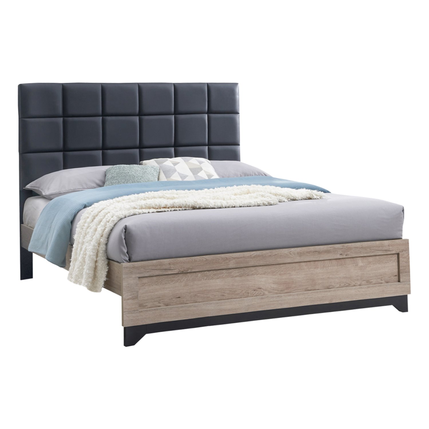 Το AELIA είναι ένα καινούργιο διπλό κρεβάτι με όμορφο design και συνδυασμό χρωμάτων. Το κεφαλάρι είναι ψηλό και επενδυμένο με ποιοτικό ύφασμα με καπιτονέ τεχνοτροπία σε κυβάκια. Οι τραβέρσες και το ποδαρικό είναι από MDF σε SONAMA χρωματισμό, προσδίδοντας μια όμορφη διχρωμία. Τέλος, το στρώμα τοποθετείται επάνω σε κλασικές τάβλες σομιέ που παρέχονται στην συσκευασία.