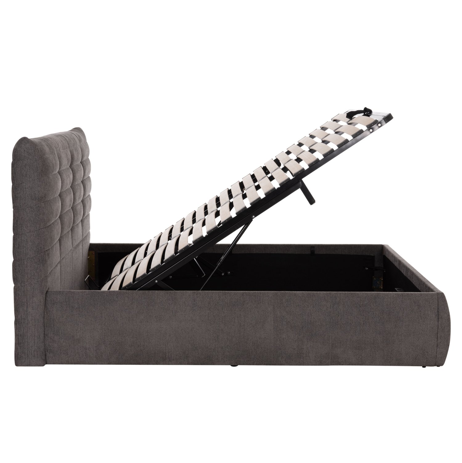Το στρώμα στηρίζεται σε 20 σειρές εργονομικές τάβλες στήριξης, οι οποίες τοποθετούνται σε ένα μεταλλικό πλαίσιο που ανασηκώνεται με μηχανισμό ασφαλείας, προσφέροντας έναν μεγάλο αποθηκευτικό χώρο επενδυμένο επίσης με ύφασμα. Μια μοντέρνα πρόταση που θα ανανεώσει το υπνοδωμάτιό σας.