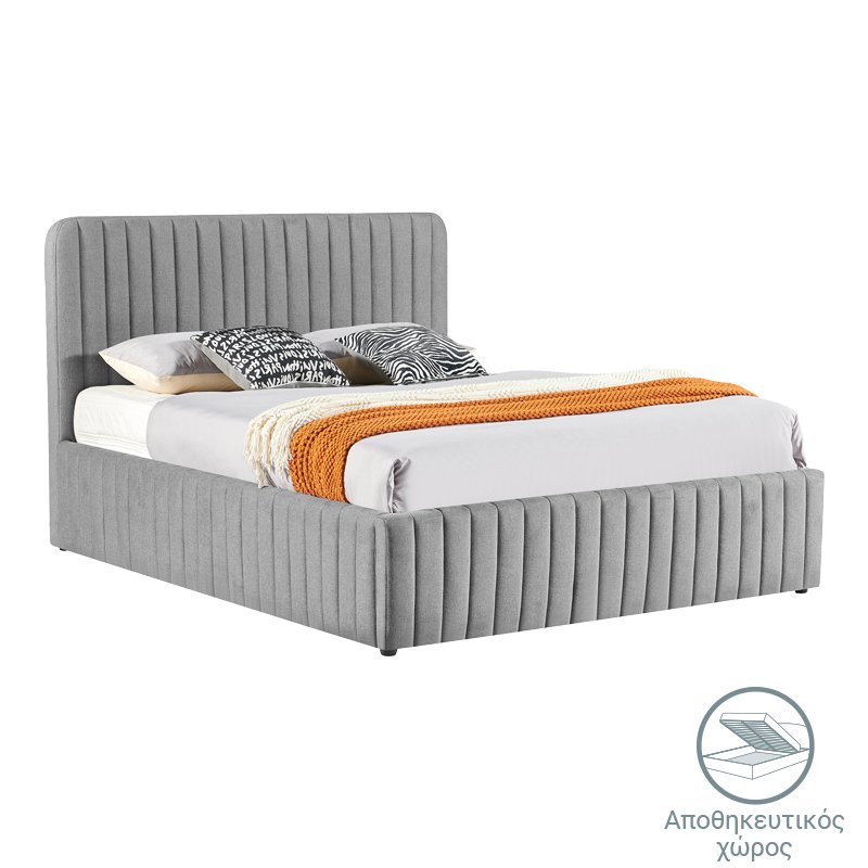 Κρεβάτι διπλό Zilin pakoworld ύφασμα γκρι-μπεζ με αποθηκευτικό χώρο 160×200εκ