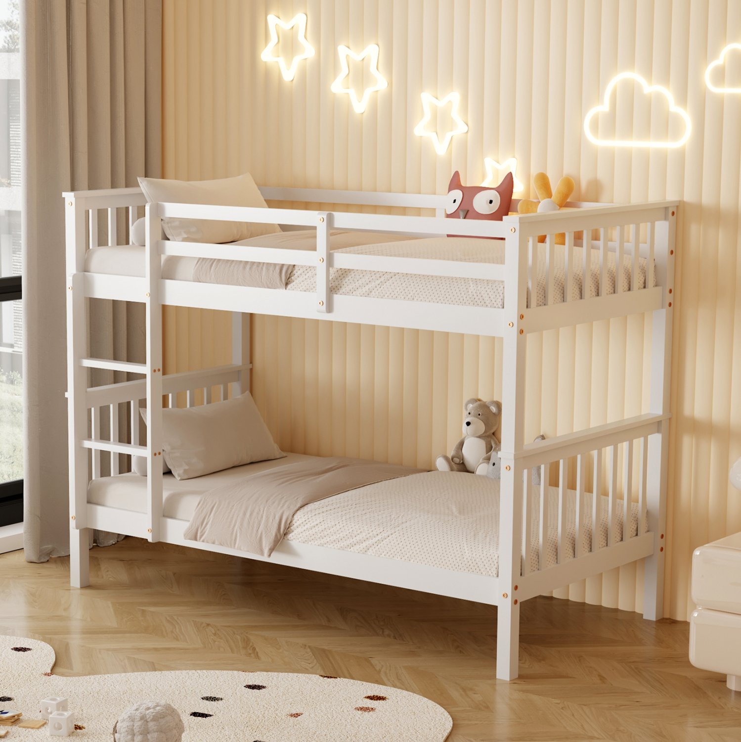 Σας παρουσιάζουμε το «LANTAI» που είναι ένα καινούργιο διώροφο παιδικό κρεβάτι-κουκέτα. Τα κρεβάτια είναι σε διάσταση για μονό στρώμα 90×190 εκ, και αποτελεί μια άριστης ποιότητας, μοντέρνα και ασφαλή επιλογή για το παιδικό δωμάτιο. Η κουκέτα είναι ξύλινη σε ΛΕΥΚΟ χρώμα βαμμένο με αβλαβές βερνίκι με βάση το νερό και μη τοξικό, ιδανικό για παιδιά. Τα στρώματα τοποθετούνται σε τάβλες κατασκευασμένες από ξυλεία κόντρα πλακέ. Διαθέτει όμορφη σκάλα πρόσβασης στο επάνω κρεβάτι καθώς και κάγκελα προστασίας περιμετρικά στο επάνω κρεβάτι, ενώ τα πόδια είναι σχετικά ψηλά, αφήνοντας χώρο για αποθήκευση πραγμάτων και εύκολο καθάρισμα. Αυτό, όμως, που κάνει αυτή την κουκέτα να ξεχωρίζει είναι ότι σας δίνει την δυνατότητα να χρησιμοποιήσετε τα δύο κρεβάτια ξεχωριστά και όχι απαραίτητα ως κουκέτα!