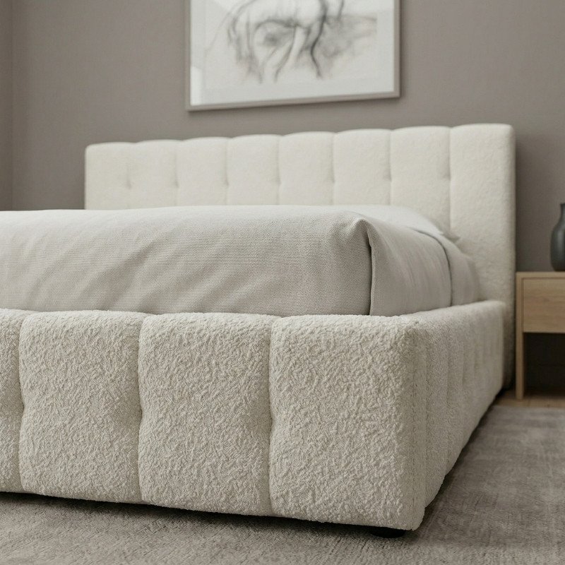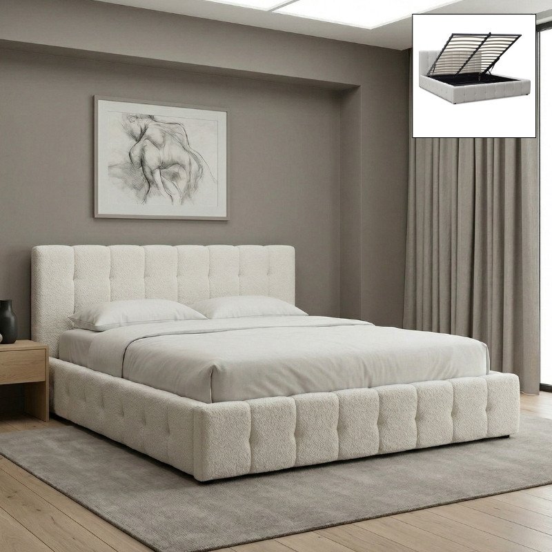 Κρεβάτι Norah Megapap μπουκλέ ύφασμα με αποθηκευτικό χώρο χρώμα ivory 160×200εκ.