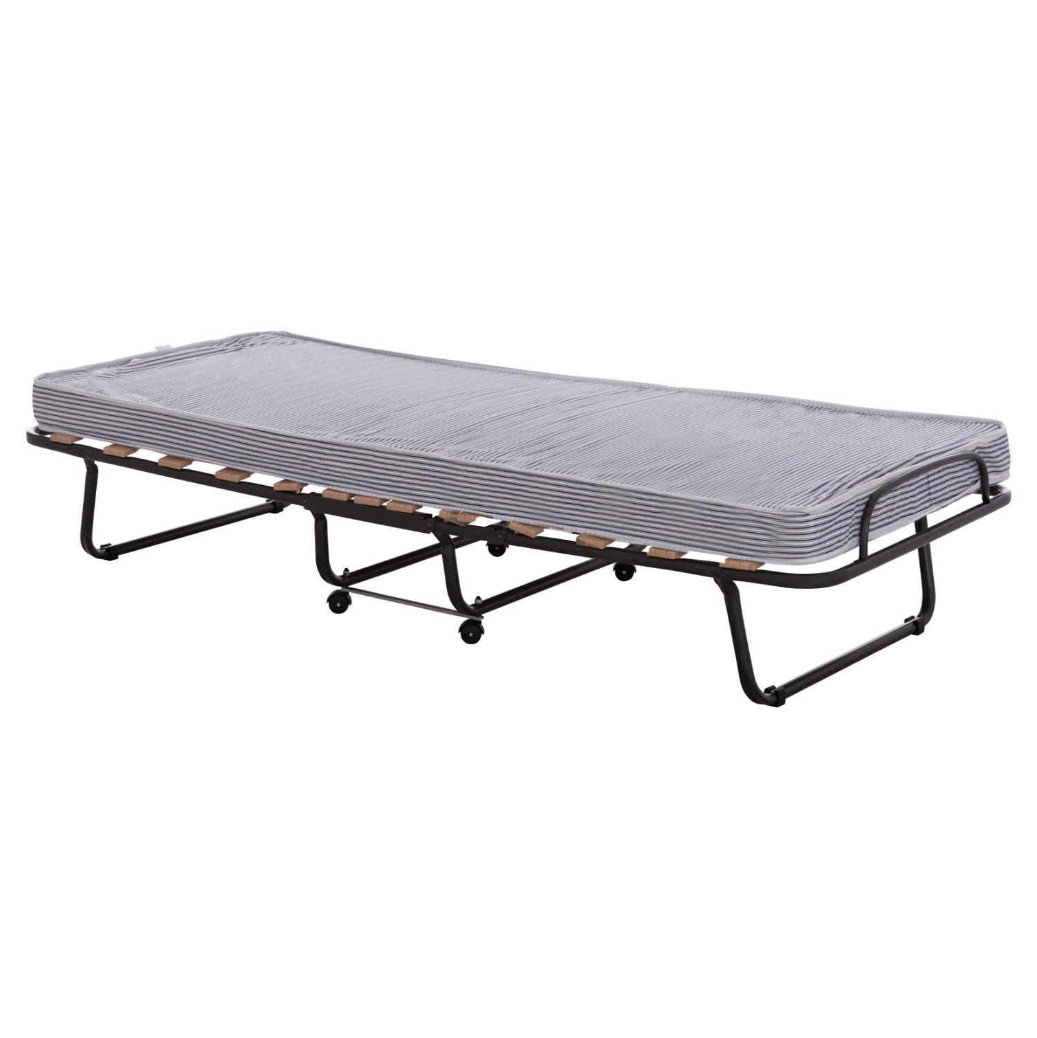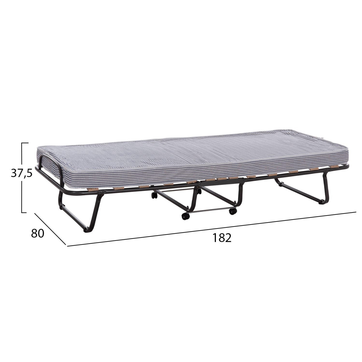 Το NOBLE είναι ένα πρακτικότατο μεταλλικό αναδιπλούμενο κρεβάτι (ράντζο) τύπου βαλίτσα (εκστρατείας) σε ΜΑΥΡΟ χρώμα, που θα σας λύσει τα χέρια. Μπορεί να «διπλωθεί» και να μεταφερθεί ή να αποθηκευτεί εύκολα χάρη στα ροδάκια που διαθέτει, προσφέροντας μια ποιοτική λύση όπου χρειαστεί. Διαθέτει ανατομικές ξύλινες τάβλες.