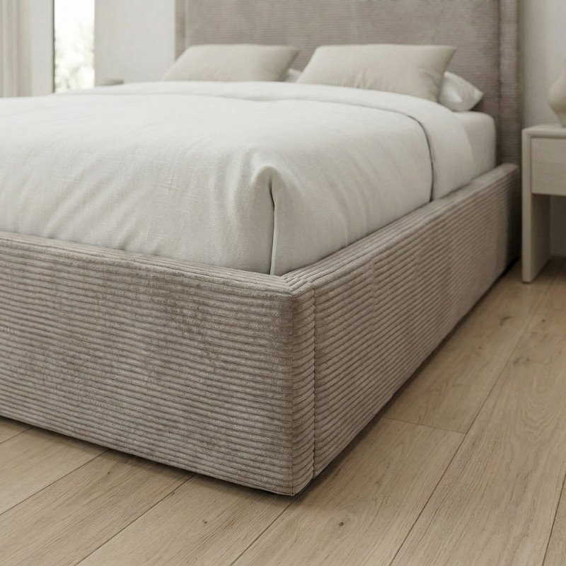 Η βάση με διπλή σειρά ανατομικών ταβλών προσφέρει εξαιρετική στήριξη στο στρώμα, ενισχύοντας την ποιότητα του ύπνου και προσφέροντας αίσθηση απόλυτης ξεκούρασης. Η επένδυση από υψηλής ποιότητας κοτλέ ύφασμα αναδεικνύει τον πολυτελή χαρακτήρα του κρεβατιού, δημιουργώντας μια ατμόσφαιρα κομψότητας και διακριτικής πολυτέλειας στον χώρο σας.