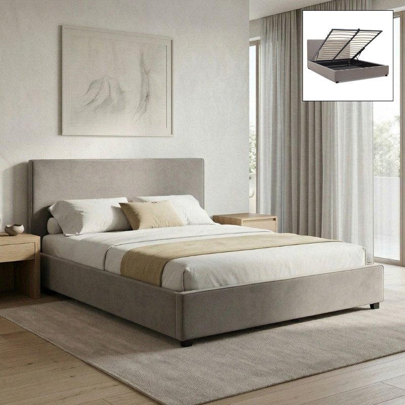 Κρεβάτι Verona Megapap υφασμάτινο με αποθηκευτικό χώρο χρώμα γκρι – μπεζ 160×200εκ.