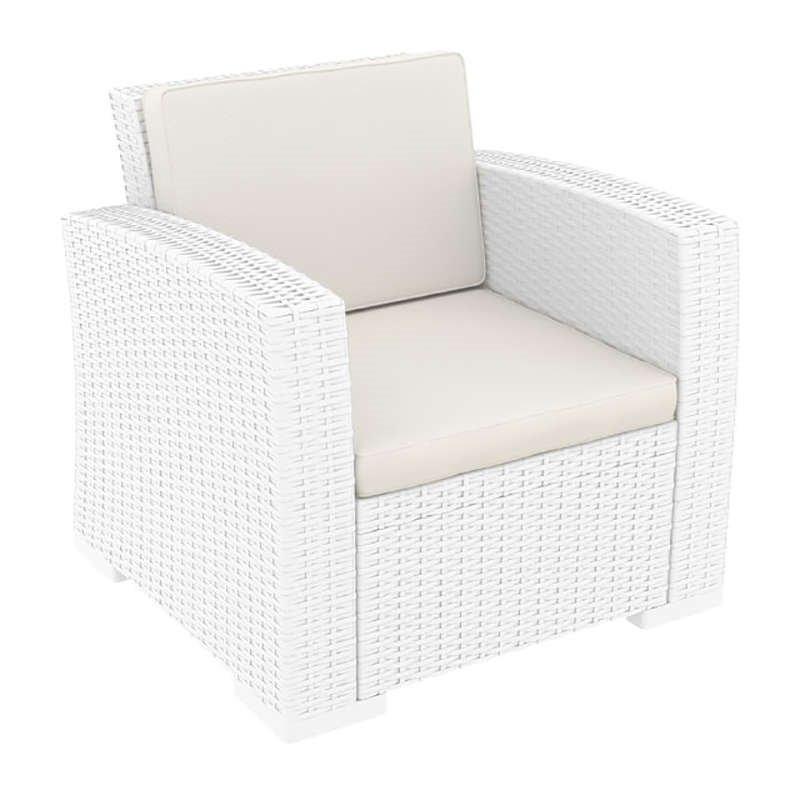 Monaco πολυθρόνα του οίκου Siesta σε χρώμα white με μαξιλάρι από υψηλής ποιότητας πολυπροπυλένιο με ενίσχυση από υαλώδεις ίνες (fiber glass) για απόλυτη αντοχή. Χωρίς μεταλλικό σκελετό για μεγαλύτερη αξιοπιστία στον χρόνο. Διαθέτει UV protection για μέγιστη προστασία από τον ήλιο ώστε να μην αλλοιωθούν τα χρώματα. Κατάλληλη για εσωτερική και εξωτερική χρήση. Πιστοποιημένο προϊόν από τον Ιταλικό οίκο CATAS.