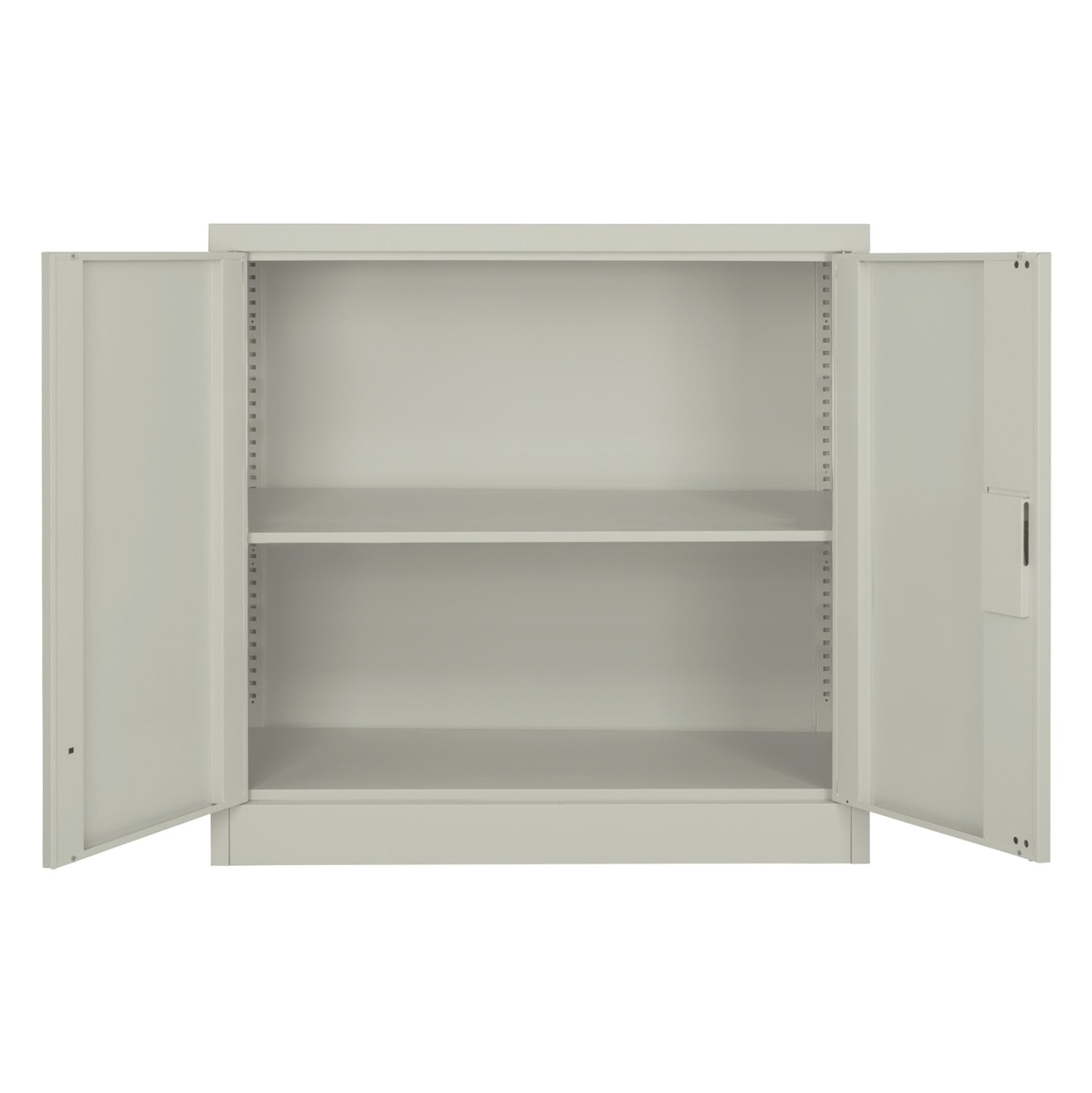 Η ΗΜ5960.11 είναι μια πρακτικότατη κοντή μεταλλική ντουλάπα που έχει φτιαχτεί με γνώμονα την χωρητικότητα για το μέγεθός της και την ανθεκτικότητα. Είναι δίφυλλη με τις δύο πόρτες να κλείνουν ακριβώς στην μέση της κατασκευής, ενώ το εσωτερικό είναι ένας ενιαίος χώρος χωρίς κάθετα χωρίσματα. Διαθέτει 1 ρυθμιζόμενο ράφι που δημιουργεί 2 αποθηκευτικούς χώρους. Οι πόρτες διαθέτουν κλειδαριά που κλειδώνει με κλειδί, ενώ το χρώμα της ντουλάπας είναι πολύ ανοιχτό γκρι.