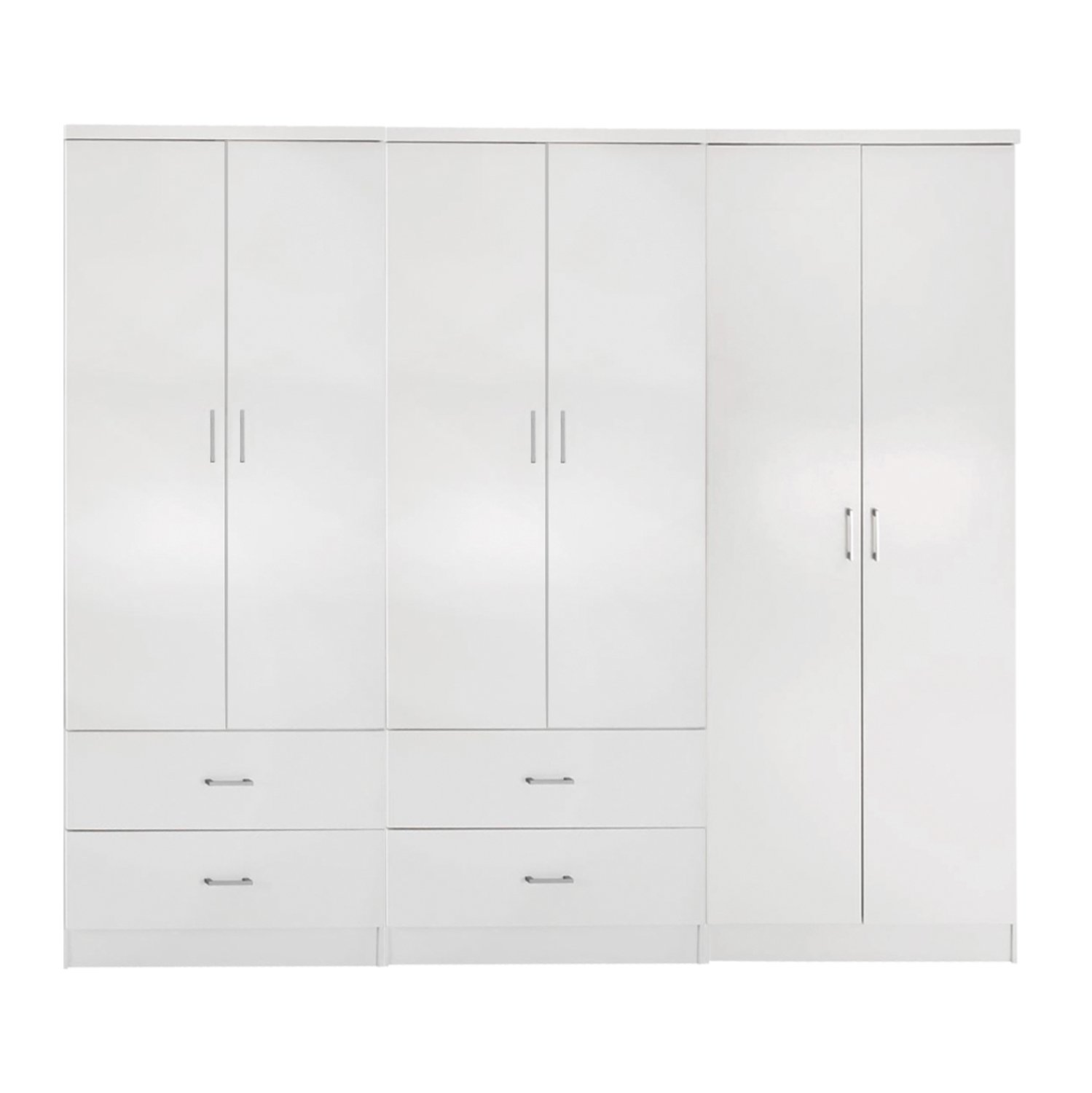 Γνωρίστε άλλη μία εκδοχή της ντουλάπας-γκαρνταρόμπας REINA (3 δίφυλλες). Πρόκειται για μια μεγάλη ντουλάπα με 6 πόρτες, χωρισμένη σε δύο μέρη. Η μία πλευρά διαθέτει μπάρα για κρέμαση ρούχων και 4 συρτάρια στο κάτω μέρος. Η άλλη πλευρά διαθέτει επίσης μπάρα για κρέμαση ρούχων και ένα ράφι πάνω από την μπάρα. Οι πόρτες αλλά και τα συρτάρια ανοίγουν με καλαίσθητα ασημί χερούλια. Είναι κατασκευασμένη από μελαμίνη σε ΛΕΥΚΟ χρώμα και αισθητικά μπορεί να ταιριάξει με πολλά άλλα στυλ, χάρη και στις «καθαρές» γραμμές της.