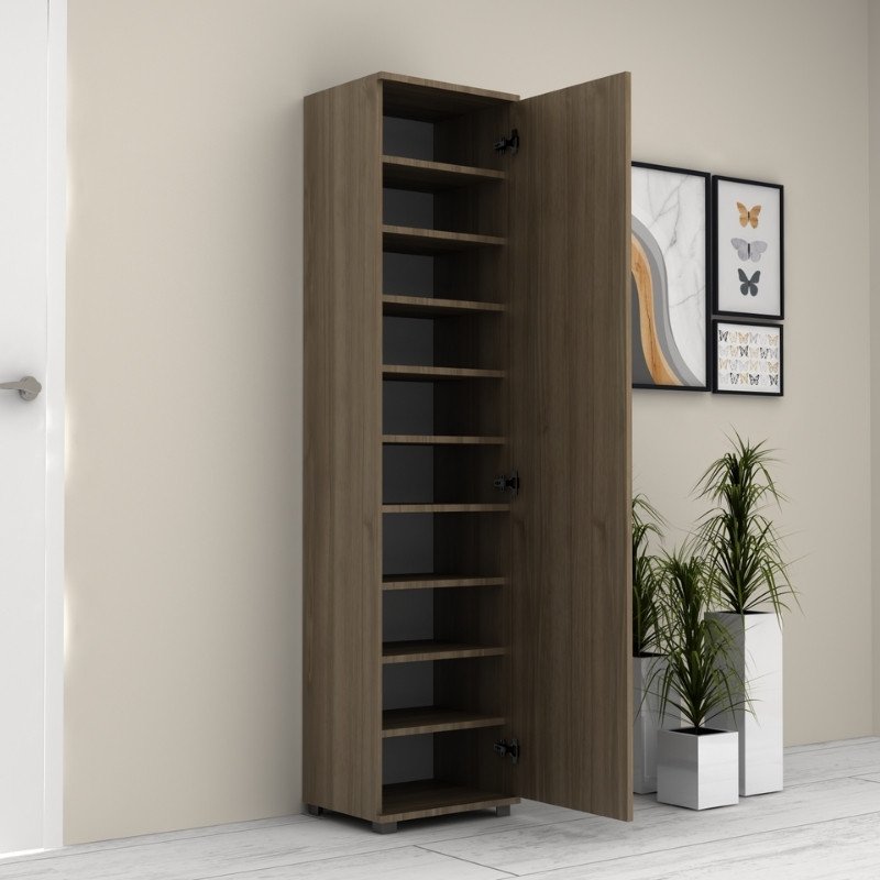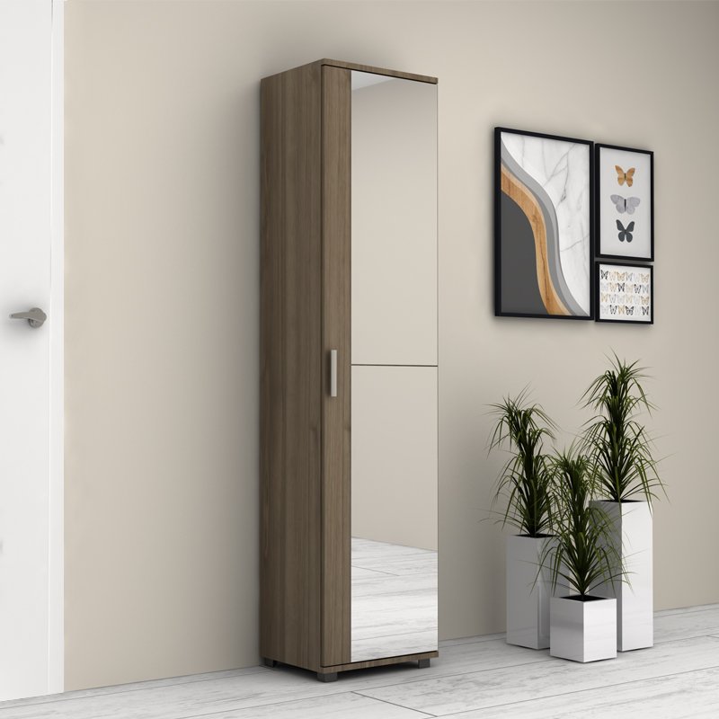 Ντουλάπα ρούχων – παπουτσοθήκη Visla Megapap μονόφυλλη με καθρέπτη χρώμα καρυδί 45x36x187εκ.