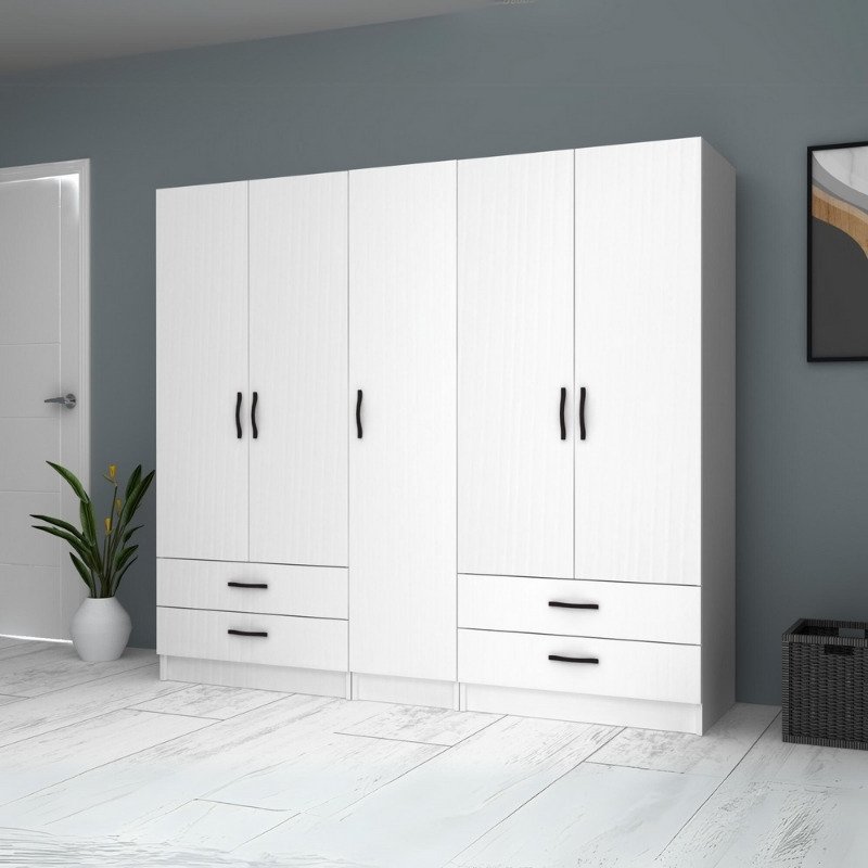 Ντουλάπα ρούχων Ricardo Megapap πεντάφυλλη με συρτάρια χρώμα λευκό 200×51,8×181εκ.