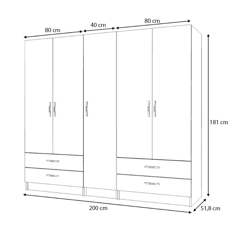 • Διαστάσεις ντουλάπας: Μήκος 200 x Βάθος 51,8 x Ύψος 181 εκ.