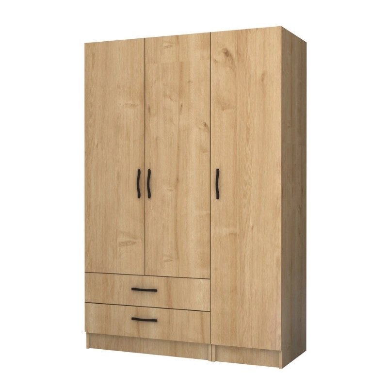 Ντουλάπα ρούχων Ricardo Megapap τρίφυλλη με συρτάρια χρώμα φυσικό οξιάς 120×51,8×181εκ.