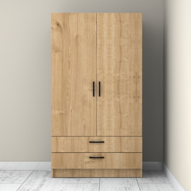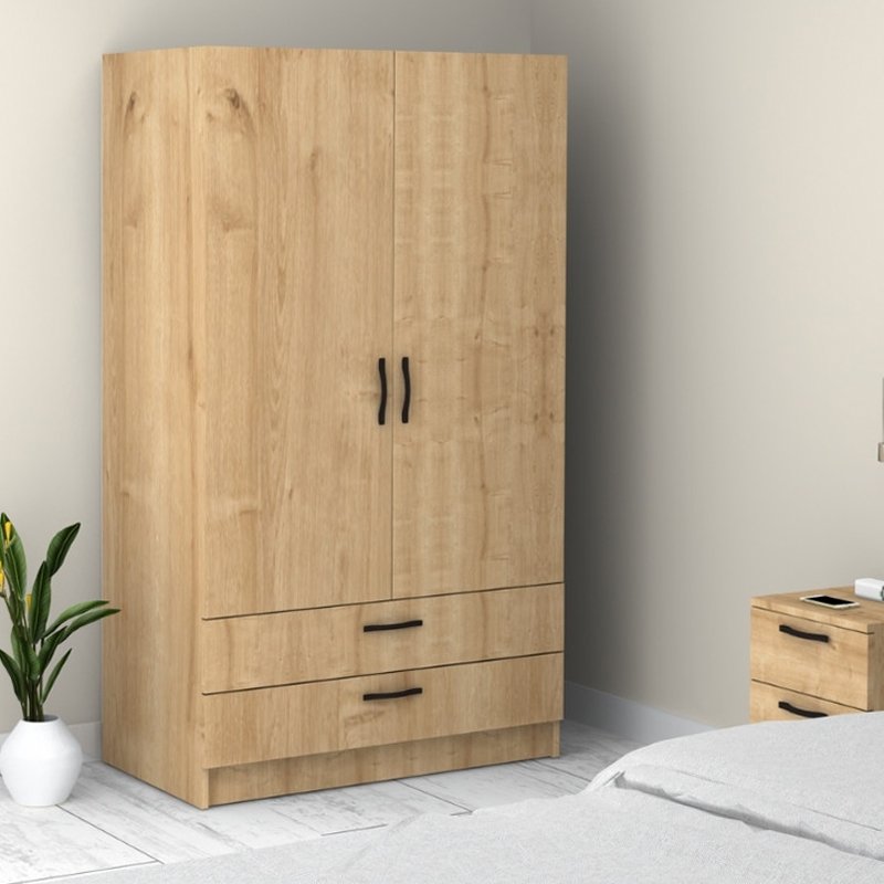 Ντουλάπα ρούχων Victoria Megapap δίφυλλη με συρτάρια χρώμα φυσικό οξιάς 100x60x181εκ.