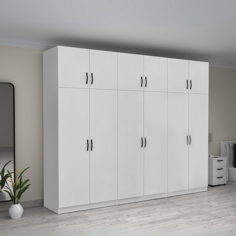 Ντουλάπα ρούχων Victoria Megapap εξάφυλλη με πατάρι χρώμα λευκό 300x60x240εκ.