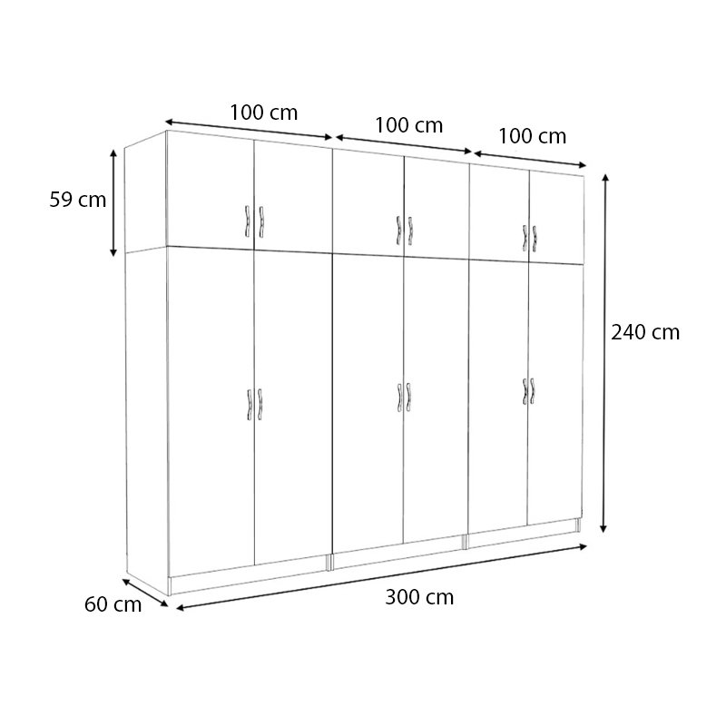 • Διαστάσεις ντουλάπας: Μήκος 300 x Βάθος 60 x Ύψος 240 εκ.